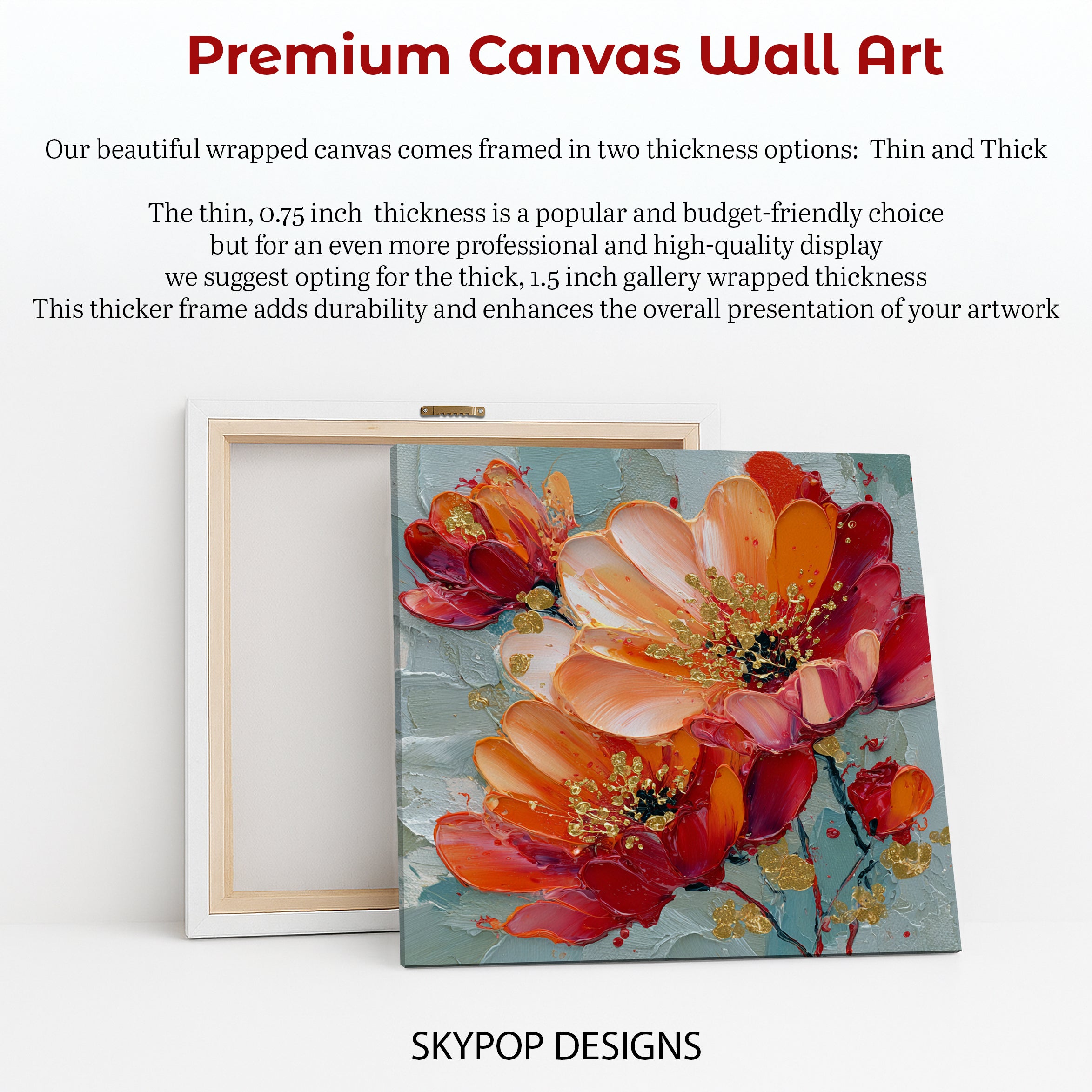 Keywords: Floral Wall Art, Canvas Wall Art, Vibrant Flowers, Red Orange Gold Art, Teal Background, Textured Canvas, Impasto Art, Impressionism Art, Contemporary Art, Nature Art, Modern Decor, Scandinavian Decor, Bohemian Decor, Living Room Art, Bedroom Art, Dining Room Art, Entryway Decor, Home Decor Art, Wall Decor, Housewarming Gift, Birthday Gift, Artistic Canvas, Floral Poster, Flower Artwork, Colorful Wall Art, Statement Piece, Interior Design, Luxury Home Decor, Living Space Art, Natural Beauty