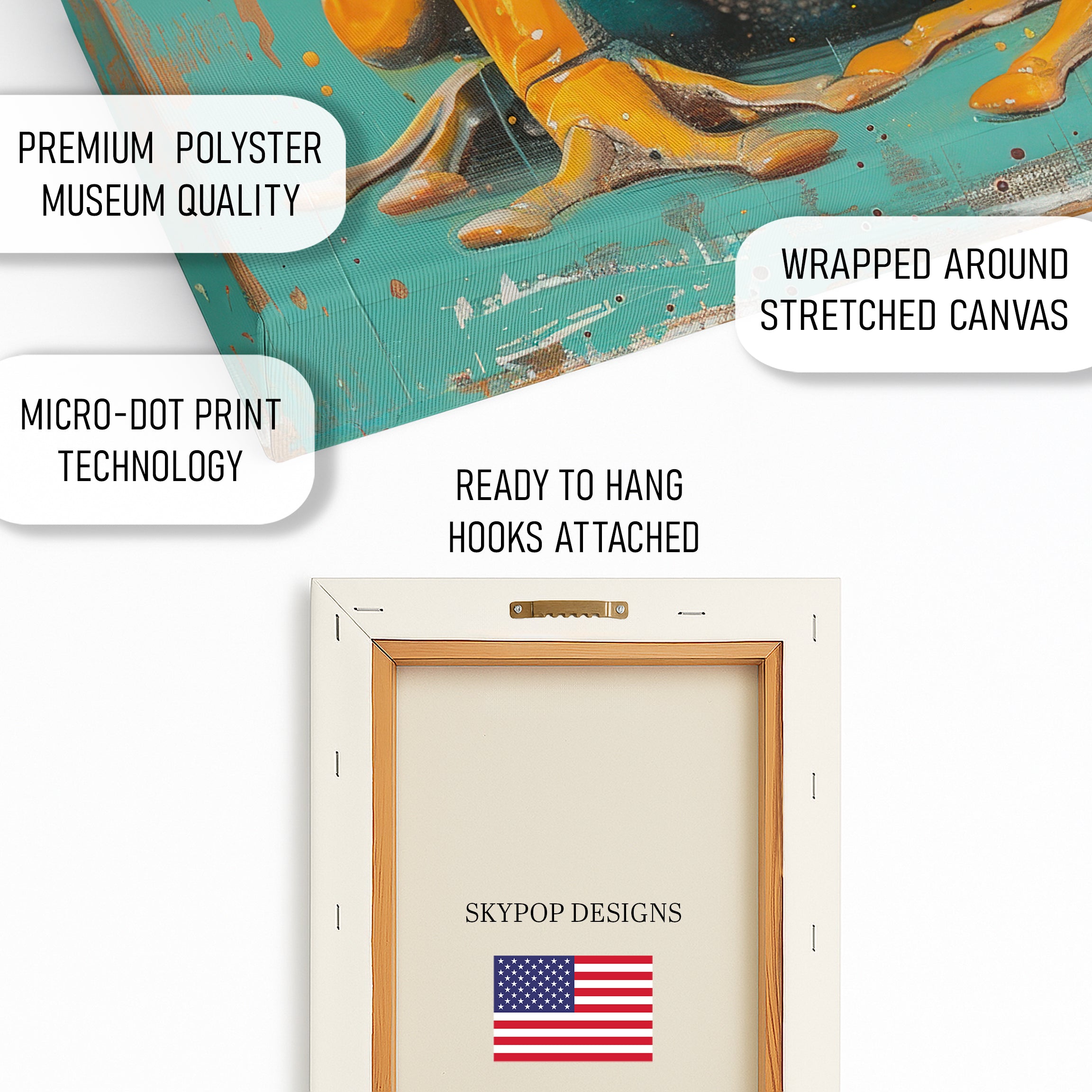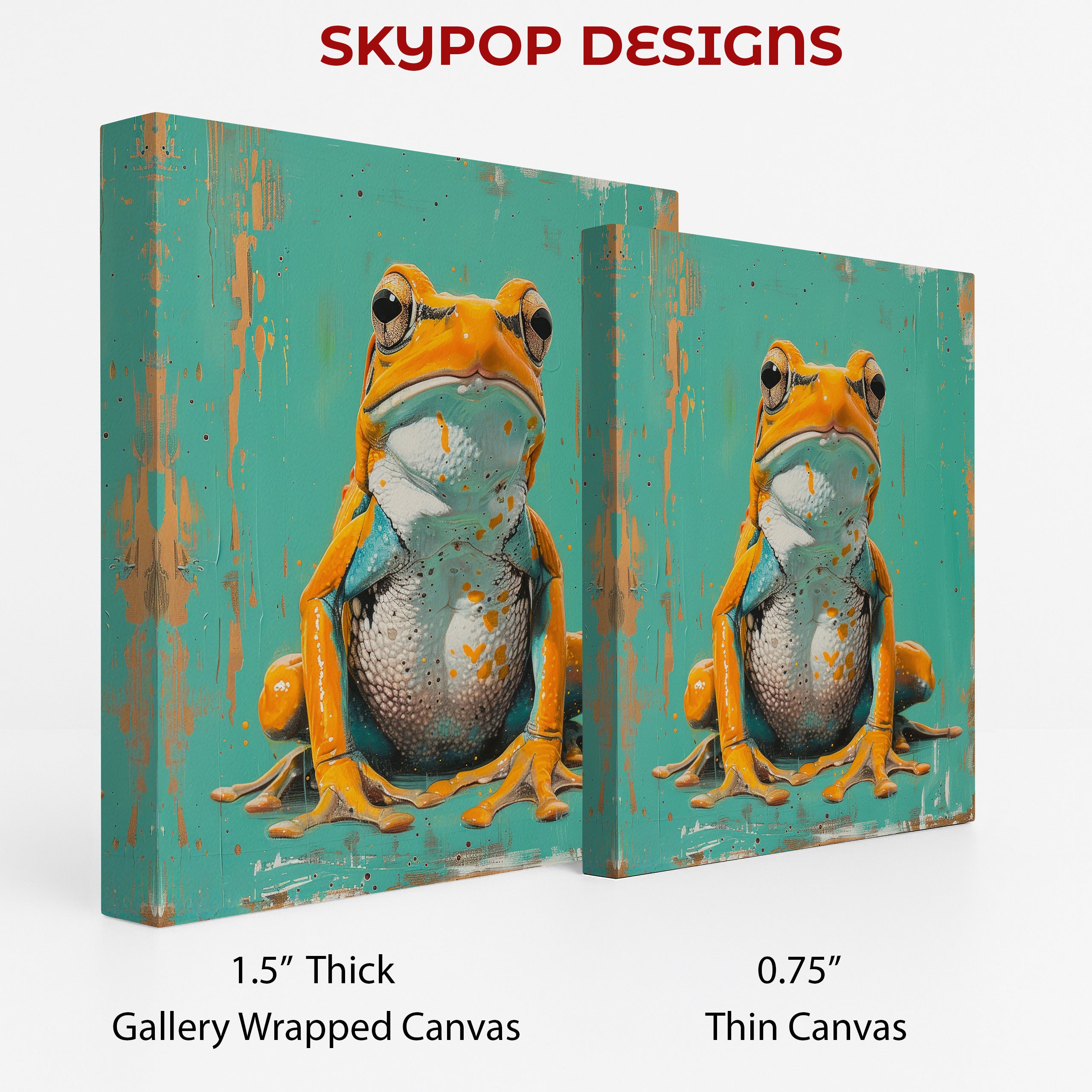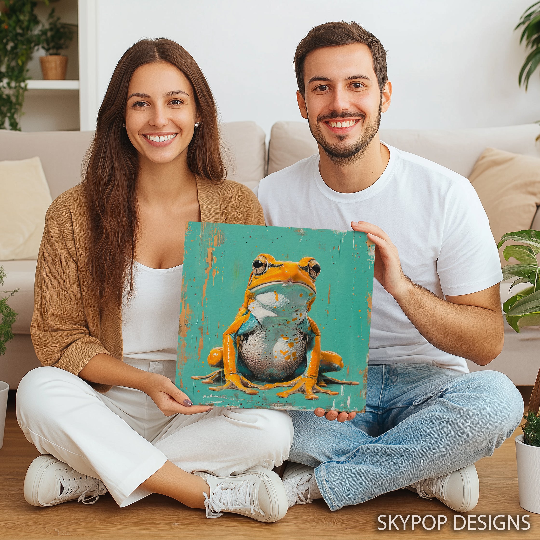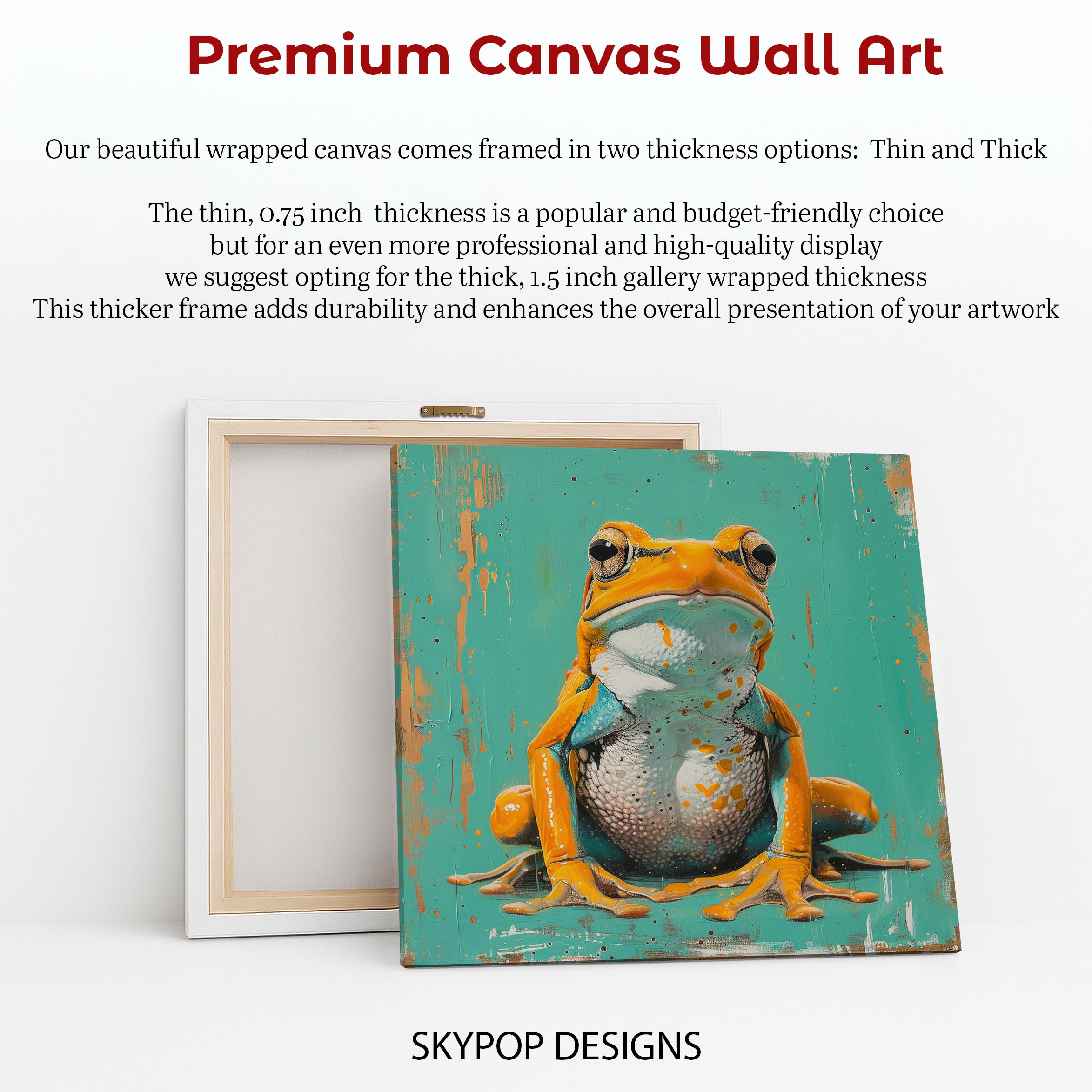 Keywords: contemporary art, animal art, nature art, modern decor, bohemian decor, living room art, bedroom art, office art, entryway decor, teal wall art, orange wall art, gold accents, multicolor art, frog art, vibrant frog, amphibian art, canvas wall art, art poster, abstract art, home decor, wall decoration, interior design, unique art, framed art, gift for art lover, nature gift, housewarming gift, colorful wall art, vibrant decor, stunning artwork