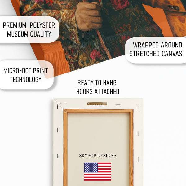 Transform your space with this striking lion canvas wall art featuring a regal male and female lion styled in fashionable outfits. This unique poster showcases anthropomorphic animals with a modern twist, perfect for adding personality to your living room, bedroom, or office. The vibrant multicolor jackets and elegant floral accents evoke a bohemian and glam decor style, creating a captivating focal point. The contrasting orange background and the rich details of the lions’ appearances make this canvas wall art a truly eye-catching piece. This artwork is ideal for those who appreciate contemporary animal art and want to elevate their home decor with a touch of sophistication and whimsy. It's a great gift for art lovers or anyone celebrating a birthday or housewarming. The high-quality printing ensures the intricate patterns and textures of the lions' attire are beautifully captured, making this poster a standout addition to any collection. Enhance your interior design with this stunning canvas wall art that inspires conversation and admiration. Add a touch of daring elegance and natural beauty to your home today with this exceptional lion wall art.