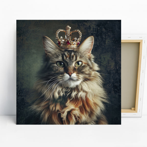 Elevate your space with this stunning cat canvas wall art, featuring a majestic cat adorned with a glittering crown. This captivating poster art transforms any room into a sophisticated sanctuary, blending animal art with a touch of glam. The vibrant greens in the cat's eyes and the rich gold of the crown create a striking visual contrast against the deep, textured background, adding a sense of royalty and intrigue. Perfect for modern living rooms or as a statement piece in a bohemian-inspired bedroom, this canvas wall art offers a unique way to showcase your love for felines. The intricate detail in the cat's fur and the dazzling crown make this artwork a true conversation starter, adding personality and warmth to your home decor. This unique piece is ideal for cat lovers and makes a wonderful gift for birthdays, housewarmings, or holidays. Experience the luxurious feel and eye-catching design of this high-quality canvas wall art that brings a regal ambiance to any wall. Whether you are looking to refresh your current decor or add a pop of personality, this striking cat poster is sure to impress. Transform your office or entryway with this bold and beautiful piece. Get this exquisite cat wall art to add a touch of opulence and charm to your home today.