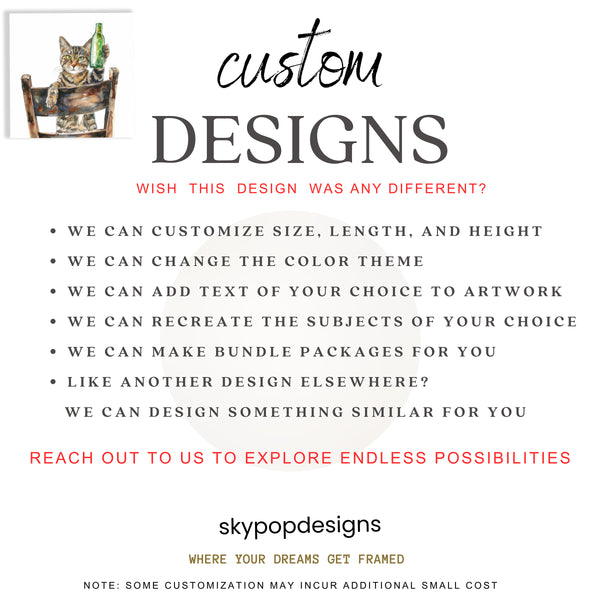 Looking for a custom design, or do you love a particular design but need it in a different size or orientation? Perhaps you've found a design elsewhere and wish for us to create something similar for you? Drop us a message! We're dedicated to meeting your needs and will work closely with you to ensure your vision comes to life.