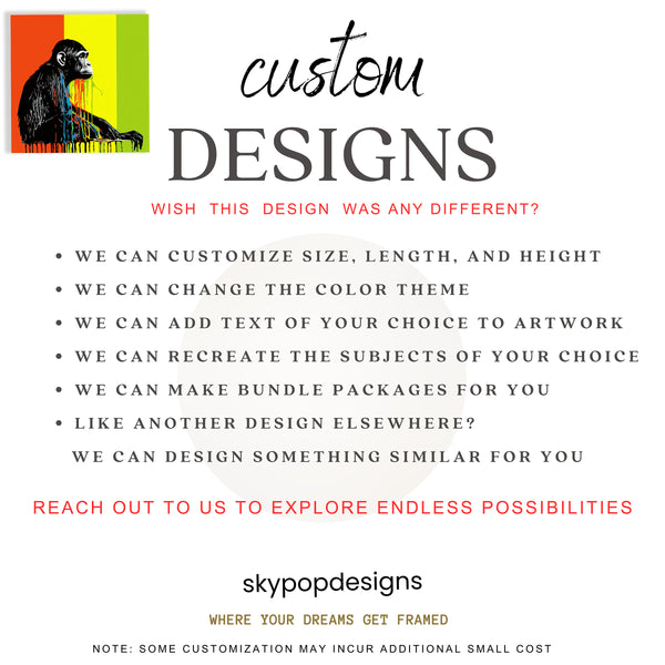 At SKYPOPDESIGNS, we specialize in high-quality canvas and poster prints designed to bring sophistication and style to your space. Please note that our designs are not created with 3D textures or as original oil, acrylic, or watercolor paintings; they are instead HD reproductions of original artwork. This approach allows us to offer these visually stunning pieces at competitive prices, ensuring you receive top-tier, maintenance-free art that's easy to enjoy.