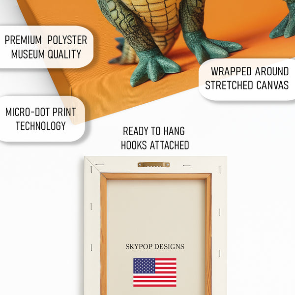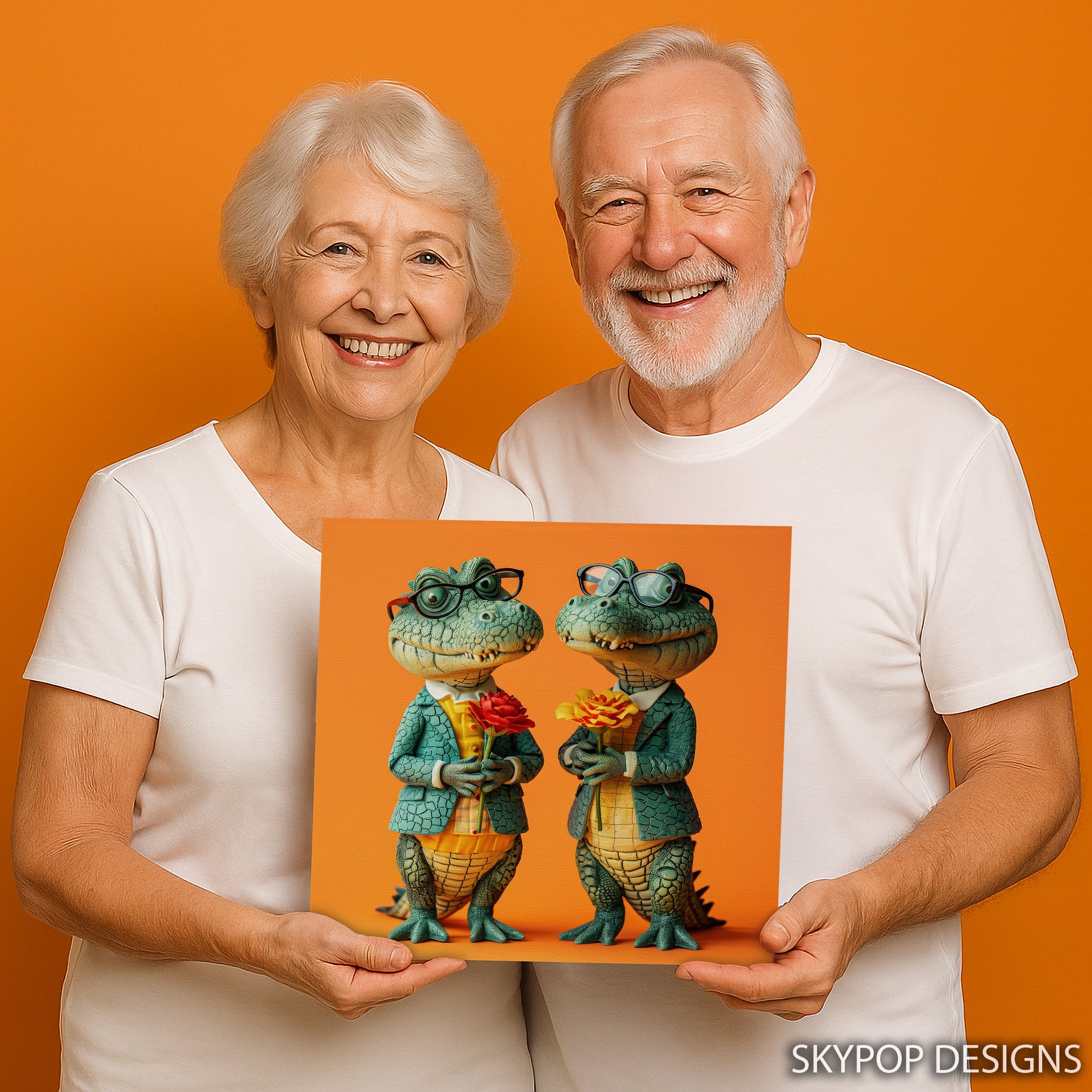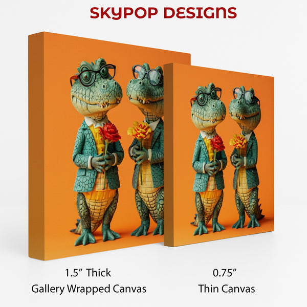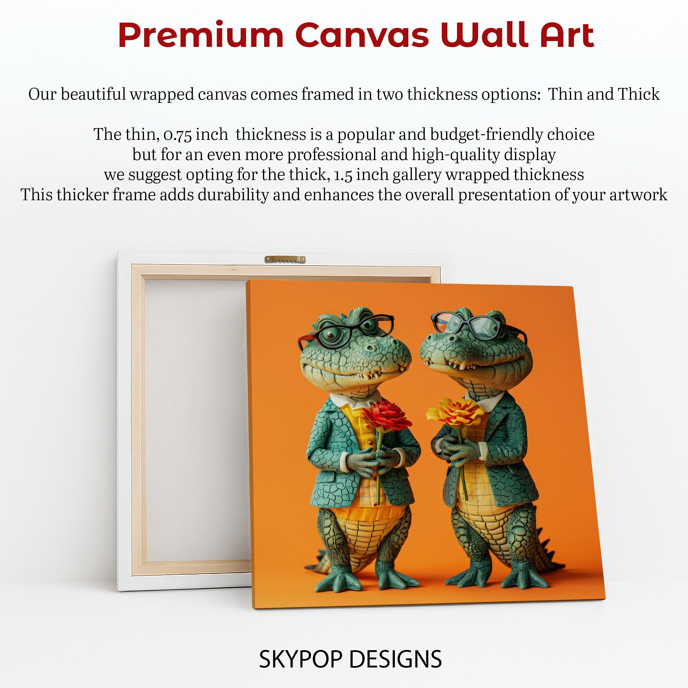 Brighten your home with this charming crocodile canvas wall art, featuring two stylish crocs holding vibrant roses. This whimsical poster brings a unique and playful touch to any space, ideal for adding personality to your living room or office decor. The striking combination of green crocodiles, accented by pops of red and yellow flowers against an energetic orange background, creates a captivating visual. Perfect for lovers of contemporary animal art, this canvas print offers a fun and sophisticated way to decorate. Display this eye-catching artwork in your bedroom for a touch of eclectic charm or in a child's room to inspire imagination. This versatile poster is a fantastic gift idea for birthdays or housewarmings, bringing smiles and conversation starters. The detailed textures of the crocodiles and the rich colors of the roses ensure this wall art stands out. Elevate your interior design with this delightful piece that celebrates quirky style and vibrant living. This engaging canvas wall art transforms ordinary walls into a focal point of joy and character. Add this uniquely charming artwork to your collection and discover how it can truly transform your space today.