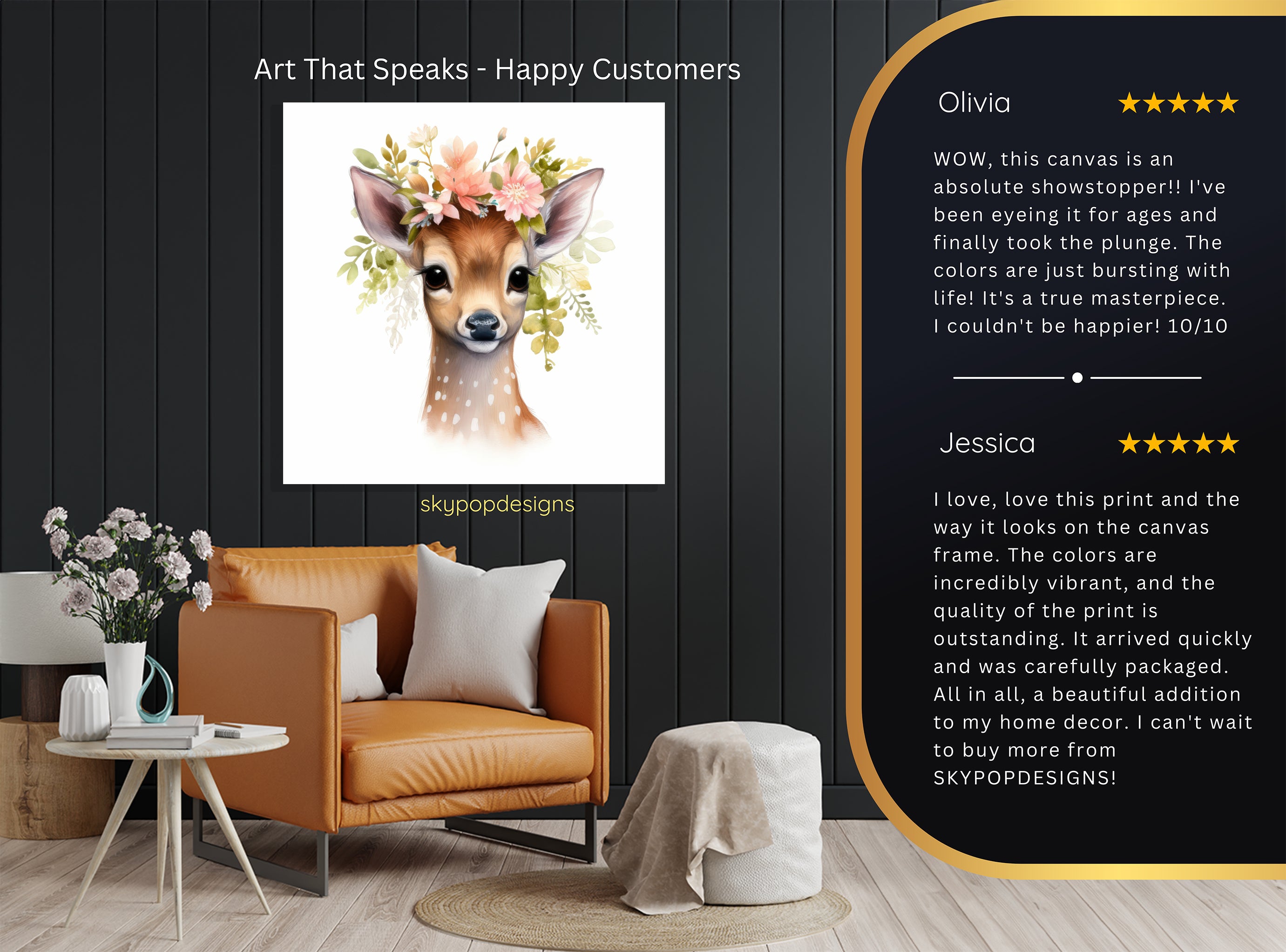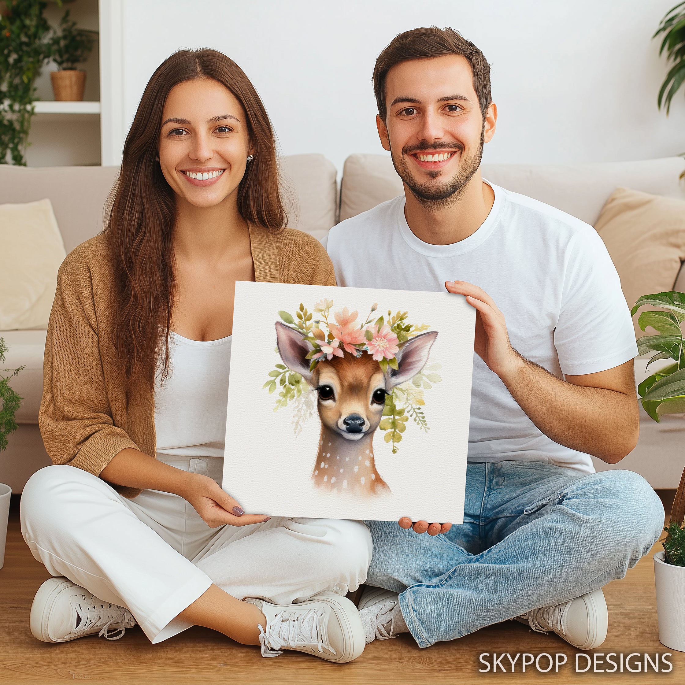 Keywords: Whimsical Art, Animal Art, Nature Art, Bohemian Decor, Farmhouse Decor, Modern Decor, Nursery Art, Children's Room Decor, Bedroom Wall Art, Living Room Art, Pink Decor, Green Decor, Brown Decor, Multicolor Art, Deer Wall Art, Floral Crown Deer, Fawn Art, Watercolor Art, Canvas Wall Art, Wall Poster, Nursery Decor, Kids Room Decor, Home Decor, Housewarming Gift, Birthday Gift, Cute Animal Art, Nature Lover Gift, Serene Art, Charming Decor, Adorable Creature Art