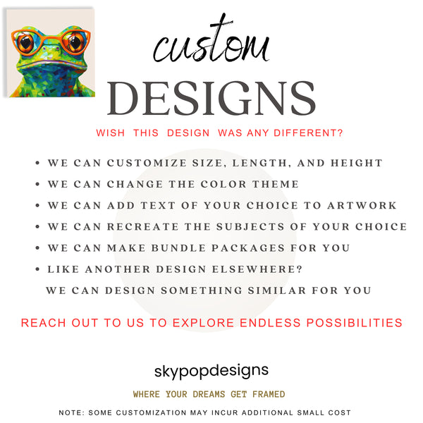At SKYPOPDESIGNS, we specialize in high-quality canvas and poster prints designed to bring sophistication and style to your space. Please note that our designs are not created with 3D textures or as original oil, acrylic, or watercolor paintings; they are instead HD reproductions of original artwork. This approach allows us to offer these visually stunning pieces at competitive prices, ensuring you receive top-tier, maintenance-free art that's easy to enjoy.