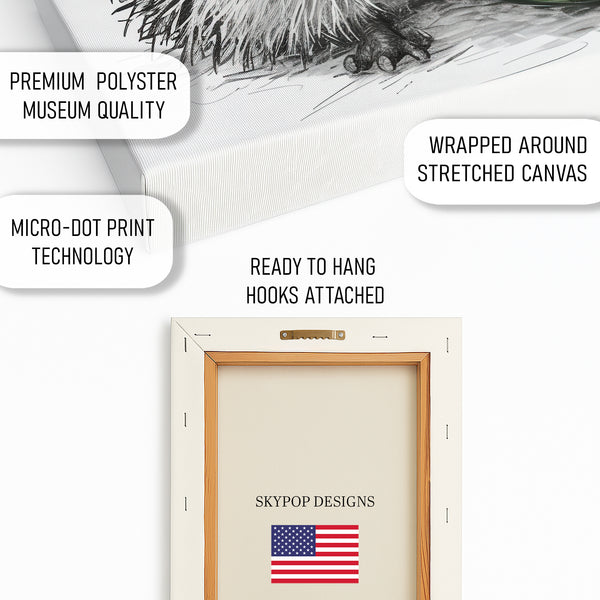 Bring a splash of playful charm to your home with this delightful hedgehog canvas wall art, perfect for adding a touch of whimsy to any room. This captivating poster showcases a cute hedgehog enjoying a juicy slice of watermelon, rendered in a striking black and white sketch with vibrant pops of red and green. The contemporary art style combined with whimsical animal elements makes this print a versatile addition to modern, minimalist, or bohemian decor. It’s an ideal piece to brighten up a living room, add personality to a kitchen, or create a cheerful atmosphere in a children's room or nursery. The stark contrast and simple yet effective brushwork create a memorable visual that is sure to spark joy and conversation. This canvas wall art serves as a fantastic gift for nature lovers, art enthusiasts, or anyone who appreciates charming animal artwork, making it perfect for housewarmings, birthdays, or holidays. The use of bold colors and a sweet subject matter evokes feelings of happiness and summer vibes, enhancing your home's overall mood. Available in various sizes, this high-quality artwork translates beautifully onto canvas or poster prints, ensuring a stunning addition to your wall decor collection. Elevate your space with this unique hedgehog art and let its joyful presence transform your home into a more vibrant and inviting sanctuary. Discover the simple pleasures of life through this endearing piece of wall art that celebrates nature's sweet moments.