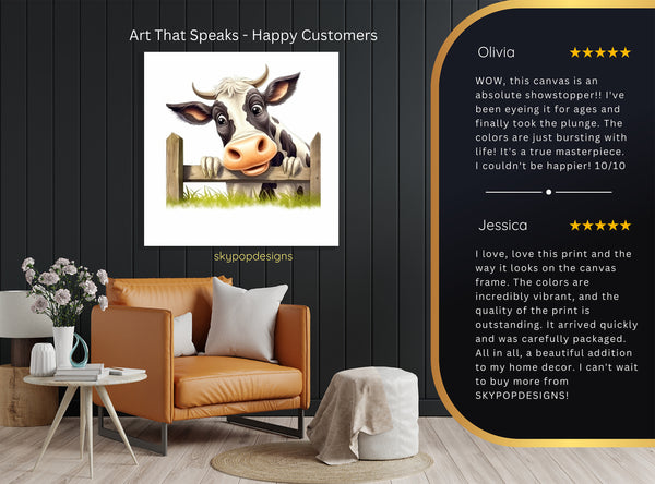 Keywords: Highland Cow Art, Canvas Wall Art, Animal Art, Whimsical Art, Contemporary Art, Farmhouse Decor, Modern Decor, Bohemian Decor, Kitchen Art, Living Room Art, Children's Room Art, Nursery Art, Black and White Art, Green Art, Brown Art, Curious Cow, Cow Poster, Rustic Fence, Farm Charm, Countryside Decor, Wall Decor, Home Decor, Animal Print, Wall Art Print, Gift for Her, Housewarming Gift, Birthday Gift, Unique Gift, Playful Art,Joyful Decor
