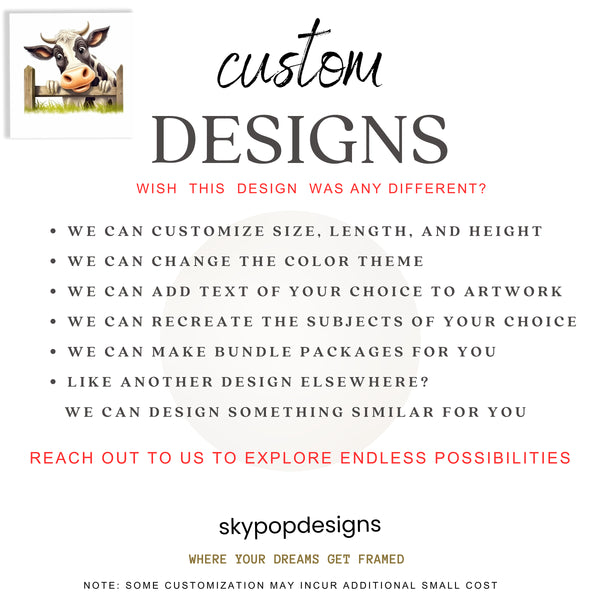 Looking for a custom design, or do you love a particular design but need it in a different size or orientation? Perhaps you've found a design elsewhere and wish for us to create something similar for you? Drop us a message! We're dedicated to meeting your needs and will work closely with you to ensure your vision comes to life.