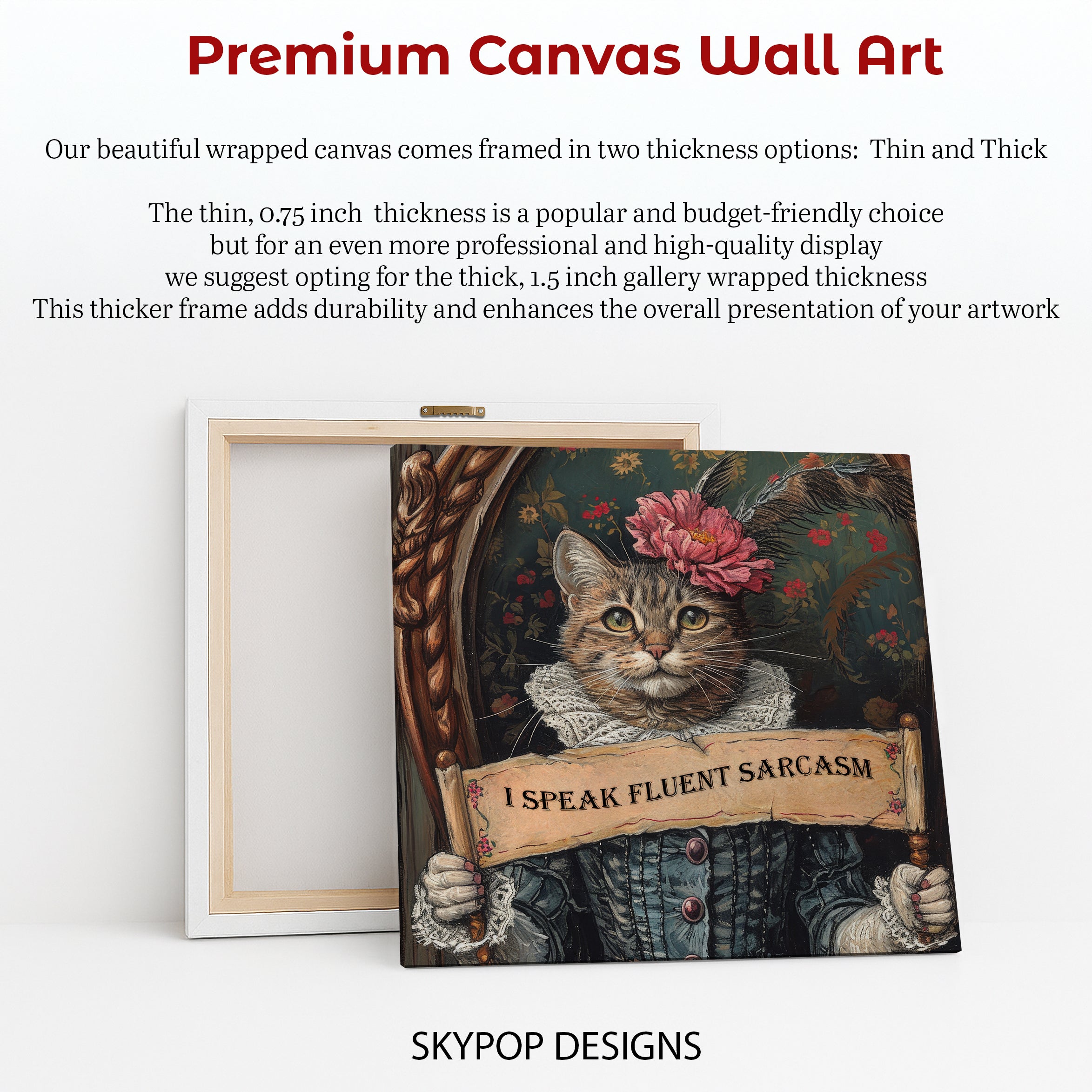 Transform your wall with this humorous and unique cat canvas wall art, featuring a witty feline proclaiming I Speak Fluent Sarcasm. This captivating piece of figurative art is perfect for adding personality and a touch of vintage charm to your living room, bedroom, or office space. The rich, multicolor palette, with dominant brown and hints of pink and green, creates a striking visual that complements bohemian or Victorian decor seamlessly. Elevate your home with this conversation-starting poster that celebrates sharp wit and sophisticated humor. Ideal for cat lovers and those who appreciate a bit of sass, this canvas wall art is a fantastic gift for birthdays or housewarmings. The detailed brushwork gives this artwork a timeless quality, making it a standout print in any collection. Enhance your space with this eye-catching piece that brings character and a playful spirit to your walls. This versatile wall art is sure to be a favorite, combining artistic flair with a relatable message. Own a print that captures the essence of your own sharp wit. Make a statement and shop this unique wall art today to instantly upgrade your home decor.