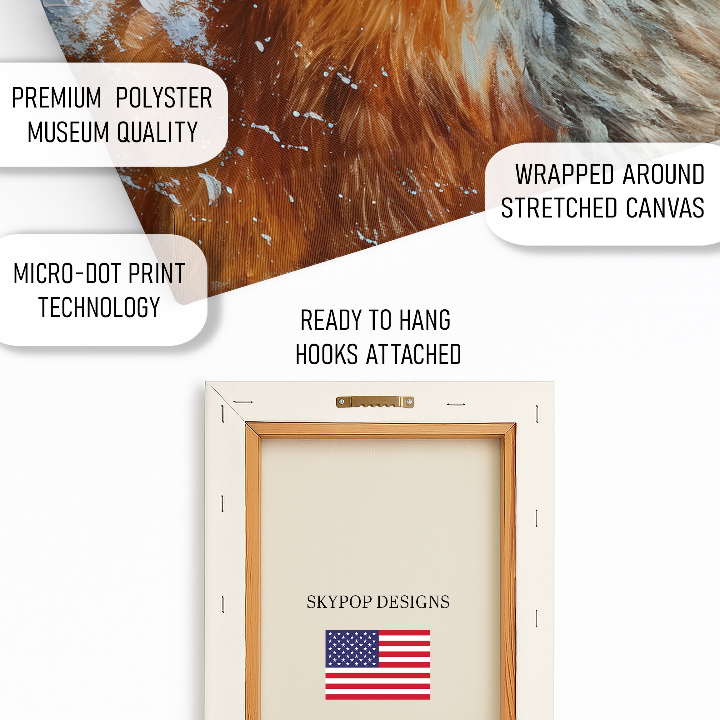 Capture the beauty of nature with this striking fox canvas wall art, perfect for bringing the outdoors in. This captivating poster showcases a majestic fox rendered in a contemporary style, with rich textures and a vibrant color palette of warm oranges, browns, and cool greys, accented by pops of white reminiscent of winter snow. The artwork's expressive brushstrokes and close-up perspective create an intimate and engaging piece that will transform any living room or bedroom. Ideal for modern or rustic decor styles, this animal art poster is a versatile addition that adds warmth and character. The striking contrast between the fox's fiery fur and the icy background evokes a sense of resilience and natural beauty, making it a thoughtful gift for animal lovers or a stunning housewarming present. This high-quality canvas wall art is also a wonderful choice for entryways or offices, inspiring a connection to the wild. Elevate your home decor with this unique piece that celebrates the captivating allure of wildlife. Add a touch of wilderness to your space with this breathtaking fox wall art today.