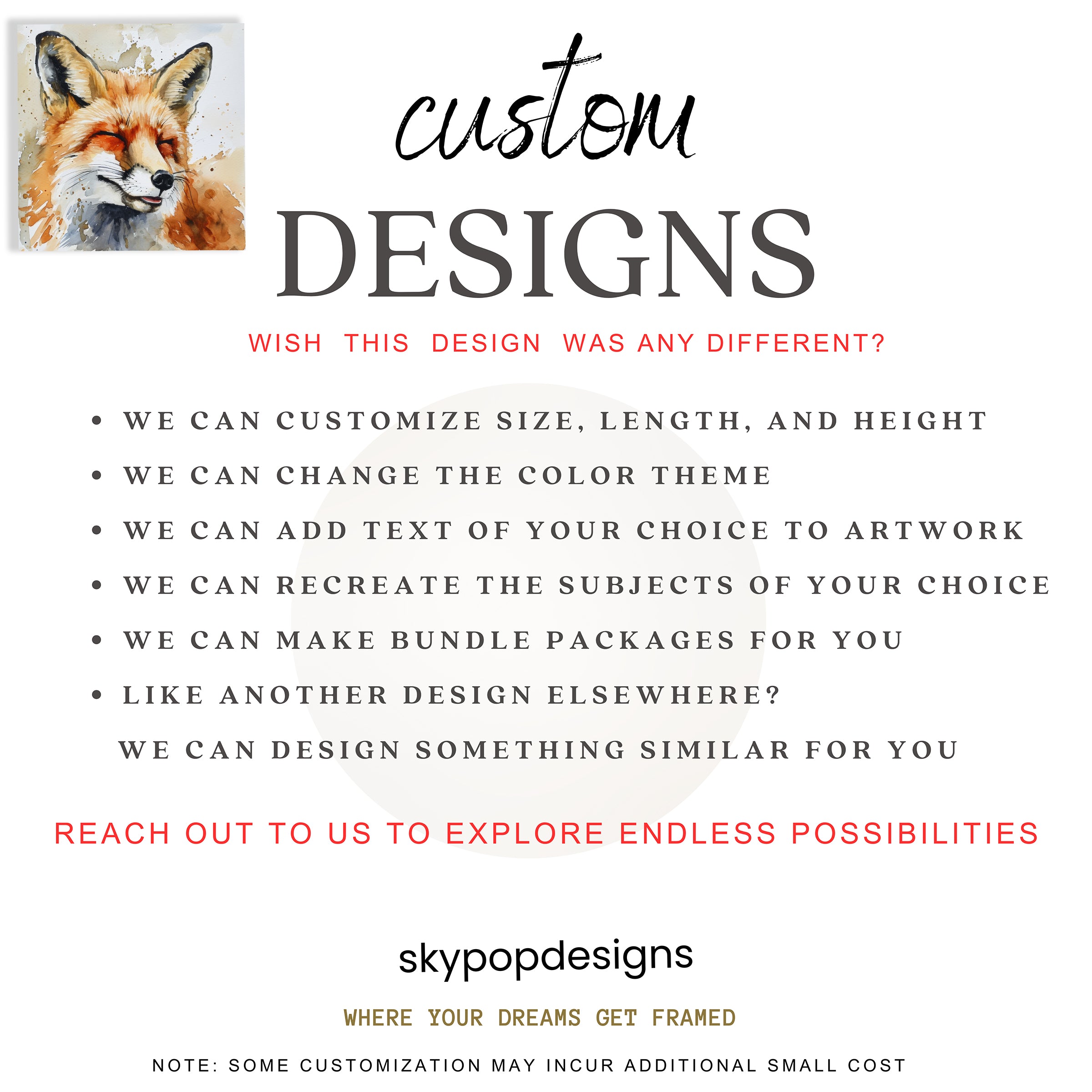 Looking for a custom design, or do you love a particular design but need it in a different size or orientation? Perhaps you've found a design elsewhere and wish for us to create something similar for you? Drop us a message! We're dedicated to meeting your needs and will work closely with you to ensure your vision comes to life.