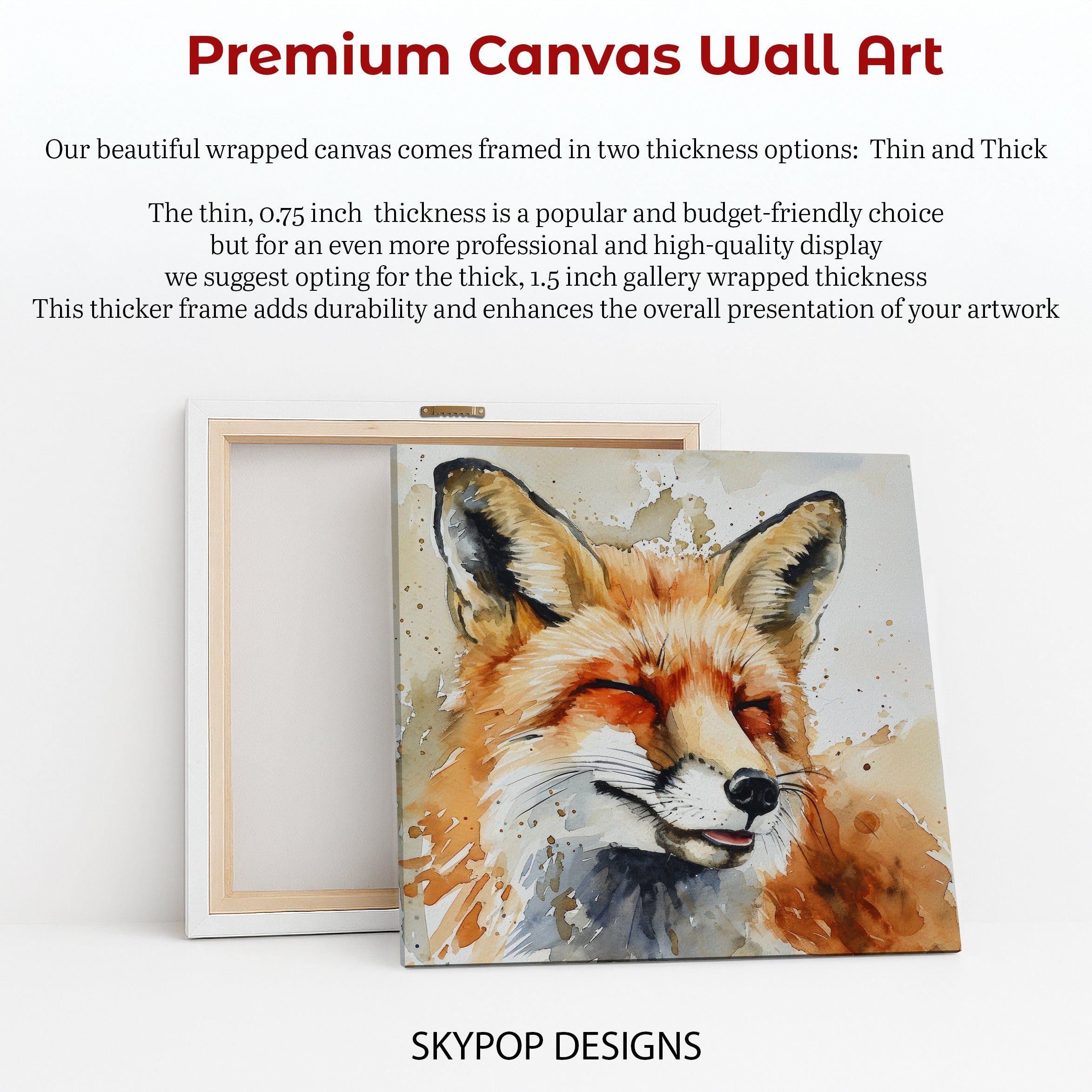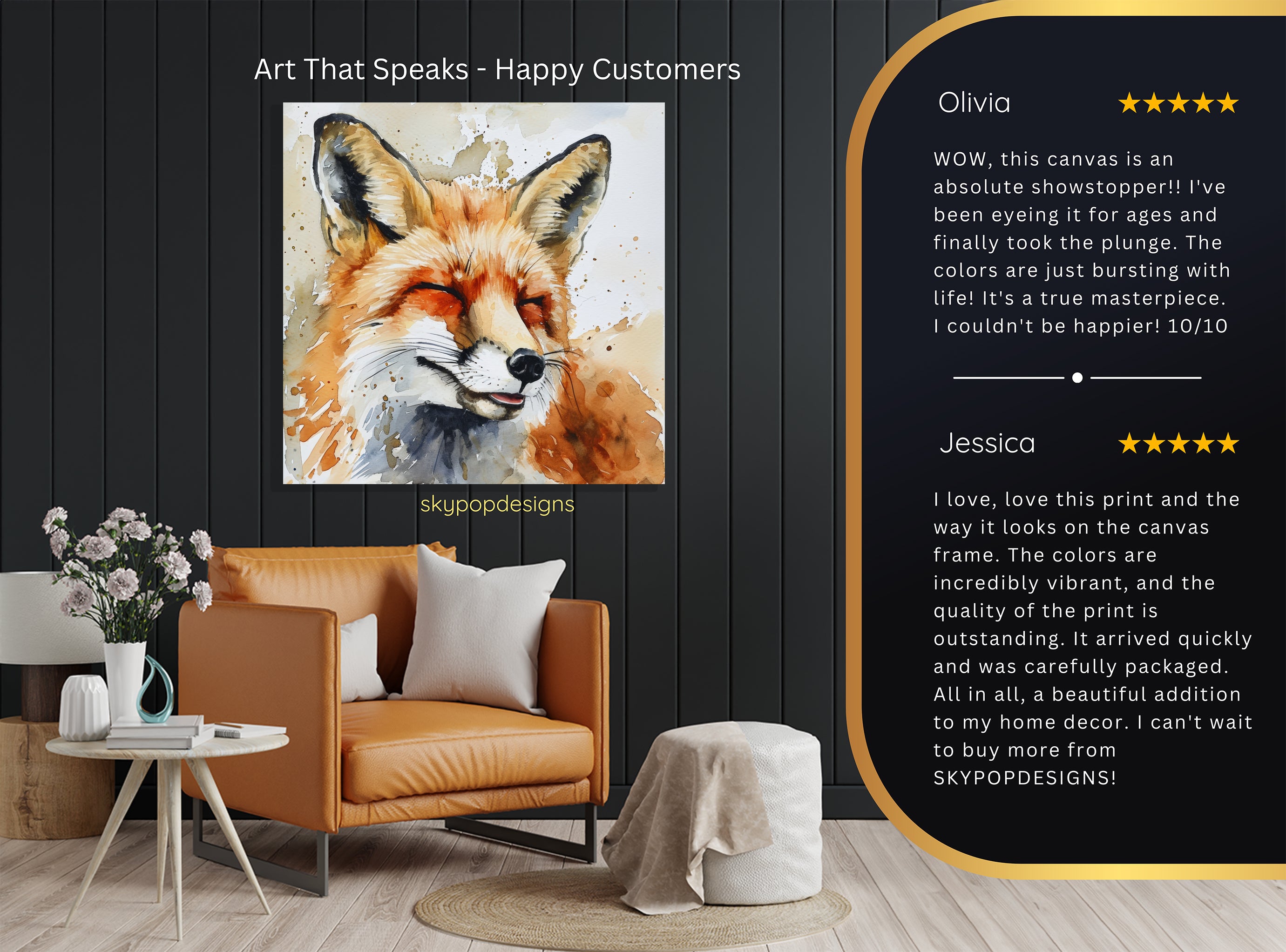 Keywords: Fox Watercolor Art, Animal Wall Art, Nature Wall Art, Whimsical Art, Bohemian Decor, Modern Decor, Rustic Decor, Living Room Art, Bedroom Art, Entryway Art, Office Decor, Brown Wall Art, Orange Wall Art, Multicolor Art, Grey Art Accents, Peaceful Fox Art, Tranquil Wall Decor, Serene Nature Art, Wildlife Art Print, Handcrafted Art Feel, Expressive Watercolor, Statement Wall Art, Gift for Nature Lover, Housewarming Gift, Birthday Gift Idea, Calming Wall Decor, Vibrant Wall Art, Soothing Home Decor, Quality Art Print, Fox Canvas Art