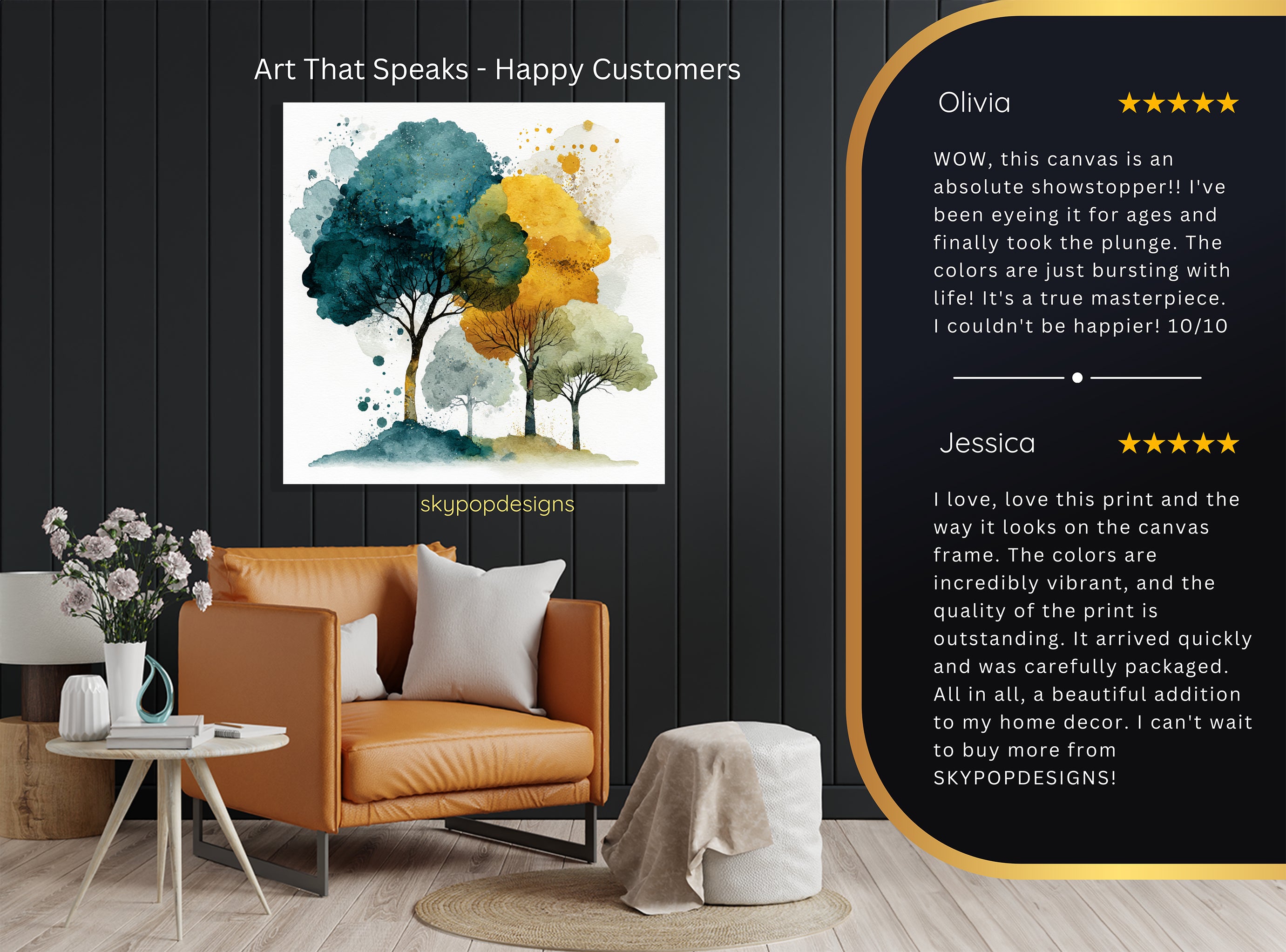 Keywords: watercolor trees wall art, nature art, abstract art, impressionism art, bohemian decor, modern decor, contemporary decor, living room art, bedroom art, entryway art, office art, teal wall art, gold wall art, grey wall art, multicolor art, canvas wall art, home decor, wall decor, art print, poster art, nature inspired, tree painting, watercolor painting, tranquil art, vibrant wall art, creative expression, housewarming gift, birthday gift, artistic home decor, unique wall art