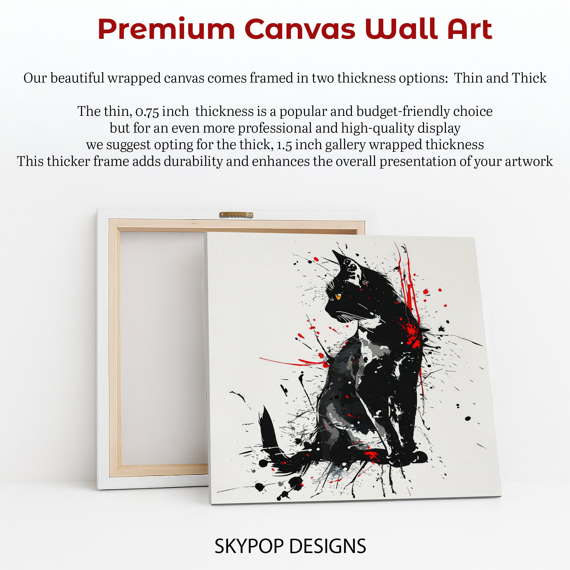 Keywords: black cat art,canvas wall art,abstract art,graffiti art,contemporary art,modern decor,minimalist decor,living room art,bedroom art,office decor,hallway art,black and white art,red art,grey art,cat lover gift,birthday gift,housewarming gift,wall decor,statement piece,animal art,urban art,art poster,splatter art,dynamic art,intriguing art,bold art,sophisticated decor,edgy art,home decor,wall art