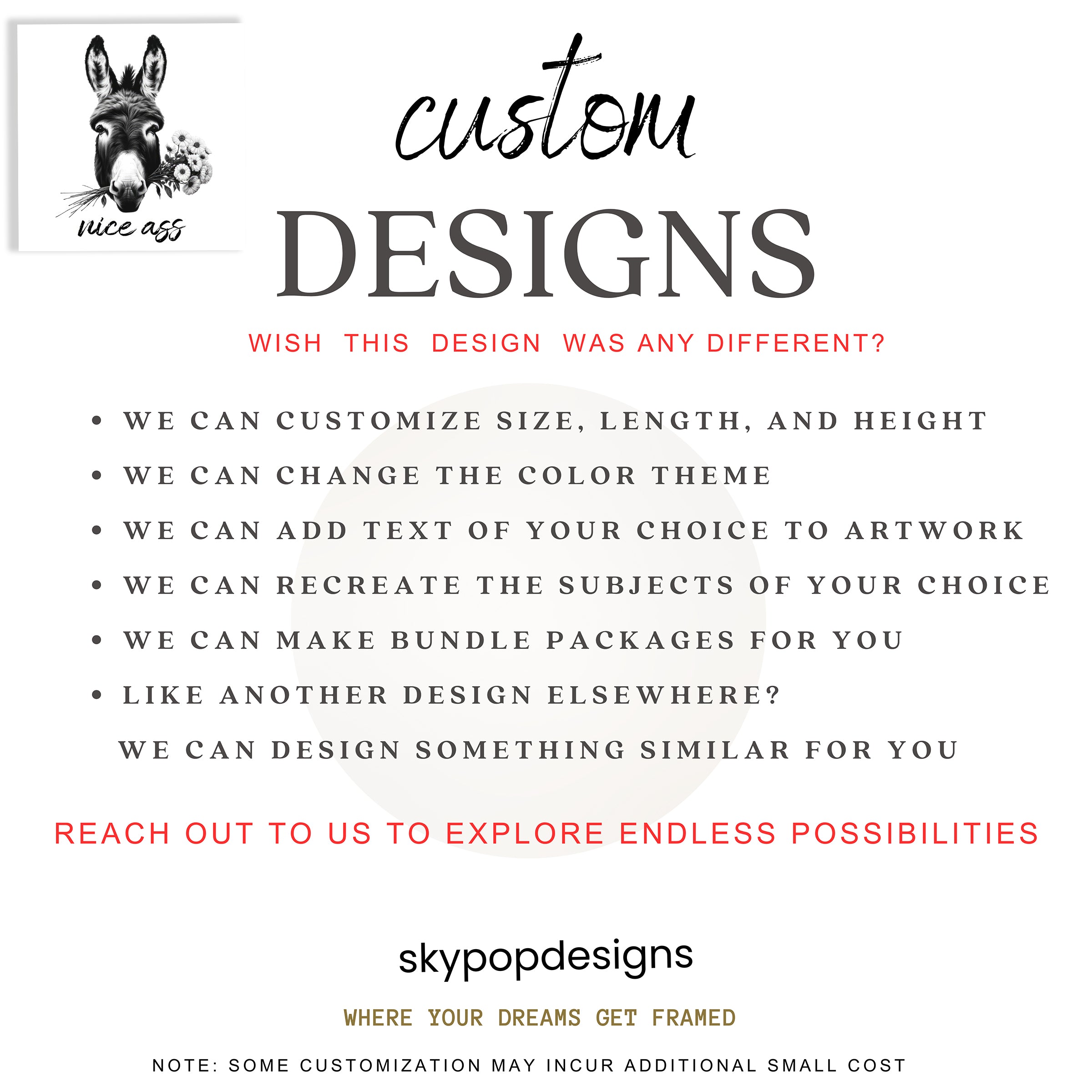 Looking for a custom design, or do you love a particular design but need it in a different size or orientation? Perhaps you've found a design elsewhere and wish for us to create something similar for you? Drop us a message! We're dedicated to meeting your needs and will work closely with you to ensure your vision comes to life.