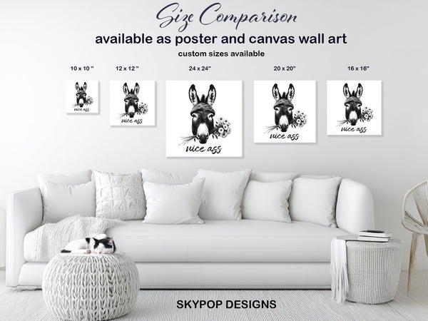 Donkey Art, Poster or Canvas, Graffiti Pop Art Modern Bohemian Decor, Living Room Bedroom Office Hallway Art, Black White Grey Multicolor