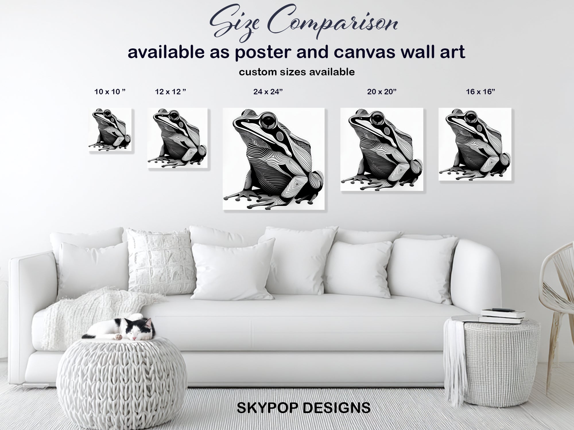 Keywords: Abstract art, Contemporary art, Graffiti art, Modern decor, Minimalist art, Contemporary decor, Living room art, Bedroom art, Office decor, Hallway art, Black and white art, Black art, White art, Frog art, Geometric art, Animal wall art, Canvas wall art, Wall art, Poster print, Home decor, Modern art, Unique art, Art lovers gift, Wildlife decor, Sophisticated art, Graphic design, Wall decor, Interior design, Artistic flair, Statement piece