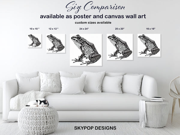Frog Art, Canvas or Poster, Geometric Animal Decor, Living Room Bedroom Office Hallway Wall Art, Black White Grey, Modern Minimalist Print