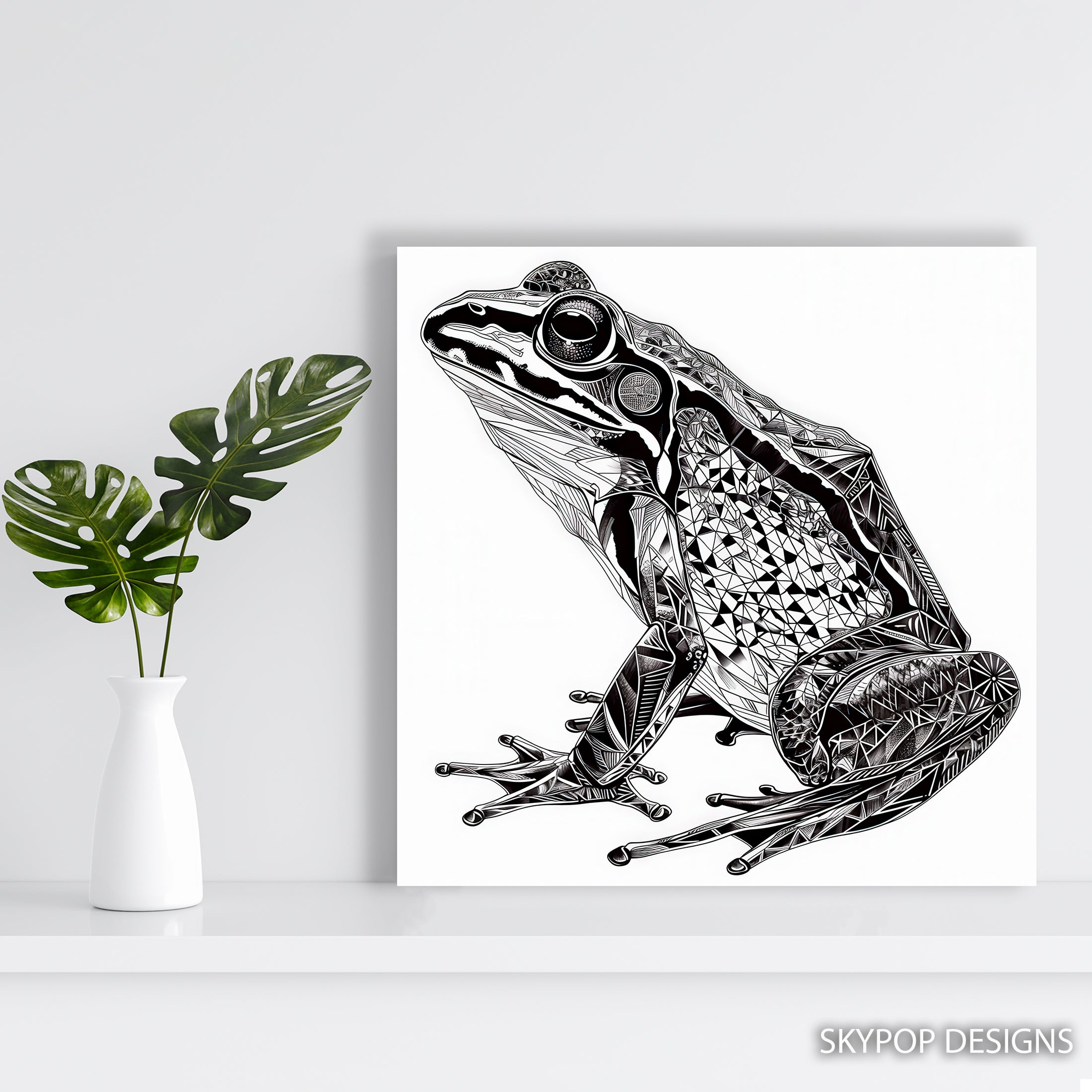 Keywords: Frog Wall Art, Geometric Frog Art, Animal Canvas Print, Black and White Art, Modern Wall Decor, Contemporary Art, Minimalist Decor, Living Room Art, Bedroom Art, Office Wall Decor, Hallway Art, Nature Abstract Art, Animal Art Print, Frog Poster, Geometric Wildlife, Abstract Nature Art, Monochrome Art, Statement Wall Art, Unique Home Decor, Artistic Frog Design, Creative Space Decor, Study Area Art, Gift for Art Lovers, Modern Animal Art, Black and White Poster, Stylish Wall Art, Focal Point Art, Geometric Design, Wildlife Wall Art, Contemporary Animal Art