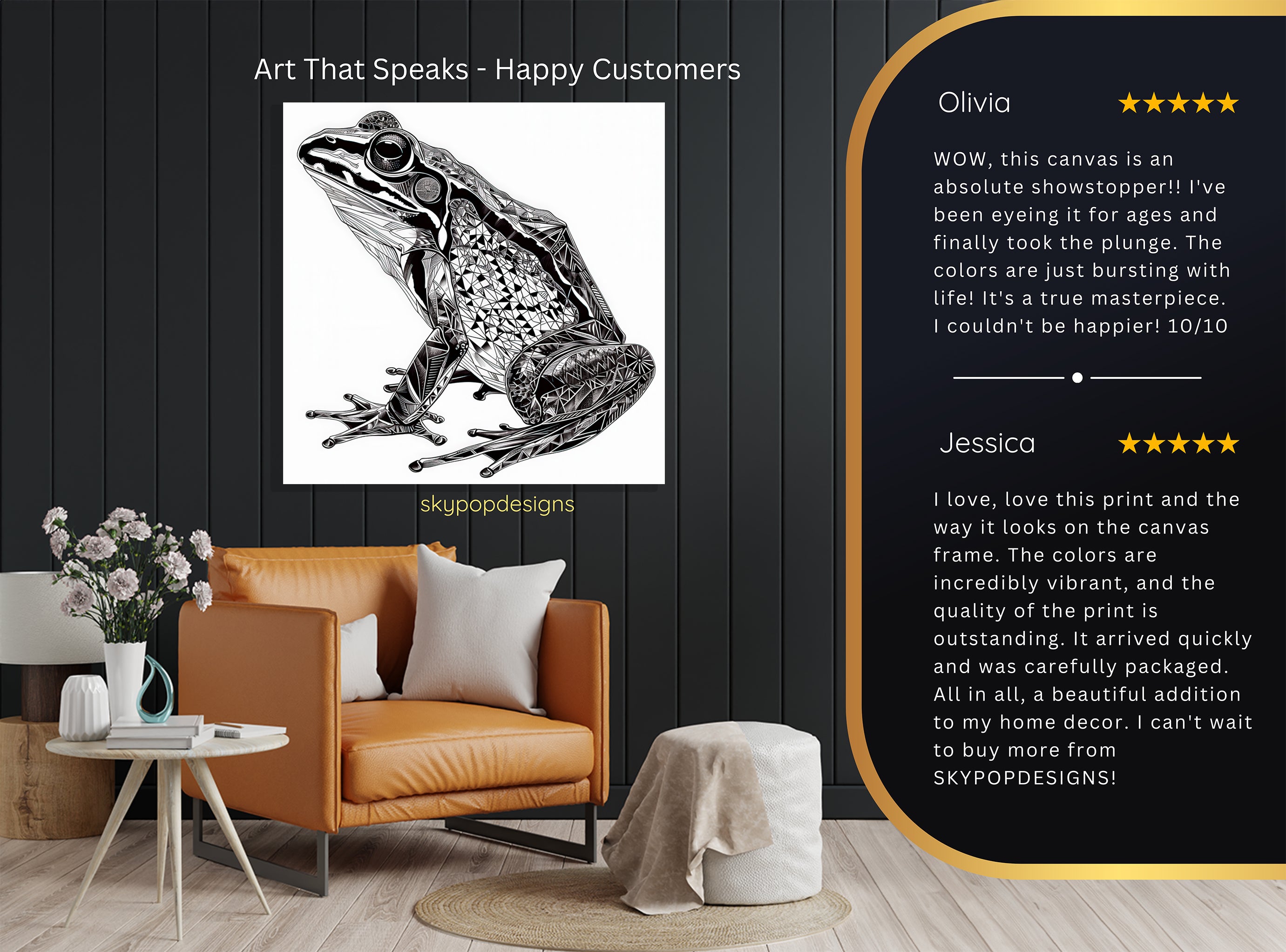At SKYPOPDESIGNS, we specialize in high-quality canvas and poster prints designed to bring sophistication and style to your space. Please note that our designs are not created with 3D textures or as original oil, acrylic, or watercolor paintings; they are instead HD reproductions of original artwork. This approach allows us to offer these visually stunning pieces at competitive prices, ensuring you receive top-tier, maintenance-free art that's easy to enjoy.