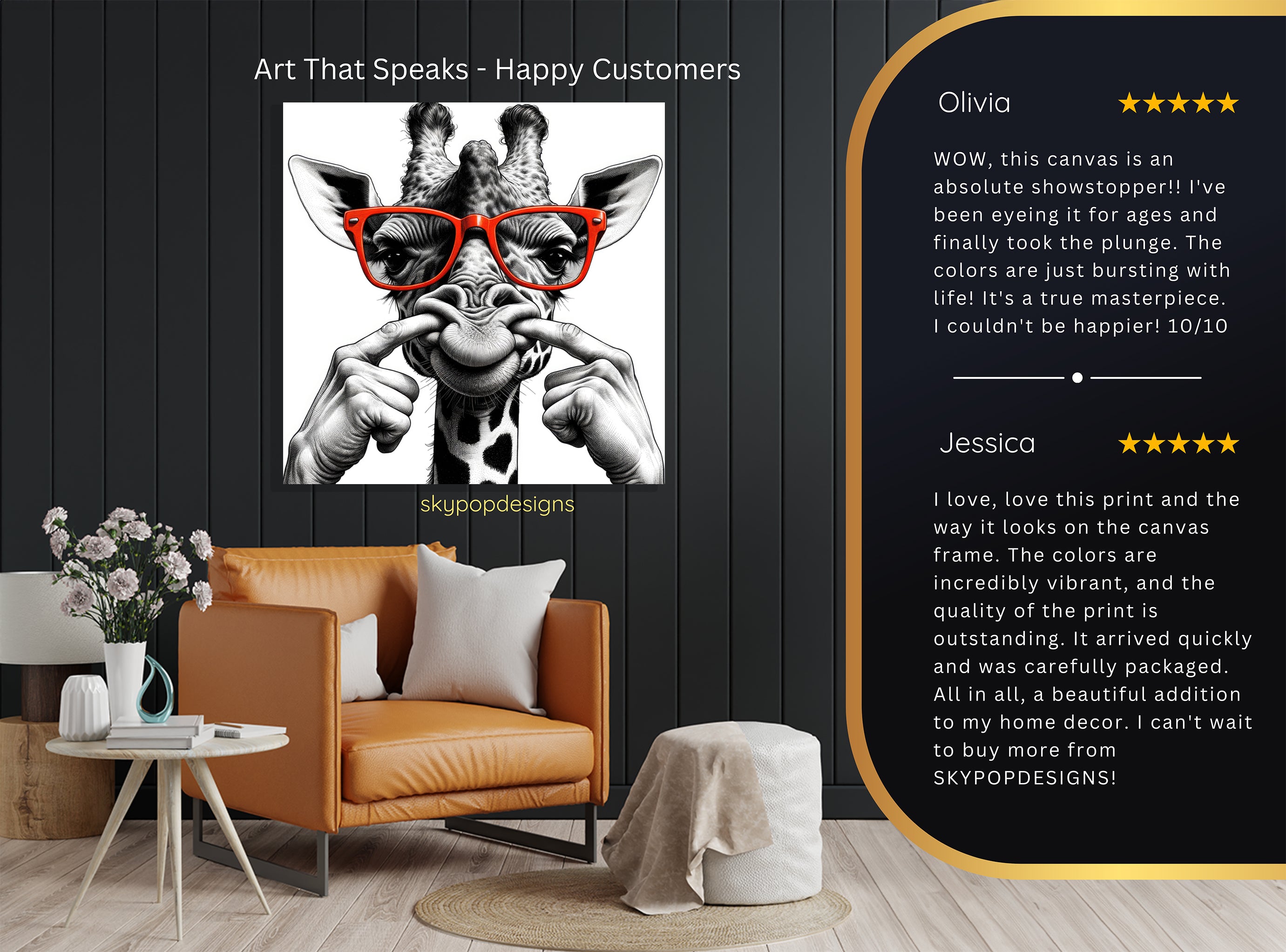 At SKYPOPDESIGNS, we specialize in high-quality canvas and poster prints designed to bring sophistication and style to your space. Please note that our designs are not created with 3D textures or as original oil, acrylic, or watercolor paintings; they are instead HD reproductions of original artwork. This approach allows us to offer these visually stunning pieces at competitive prices, ensuring you receive top-tier, maintenance-free art that's easy to enjoy.