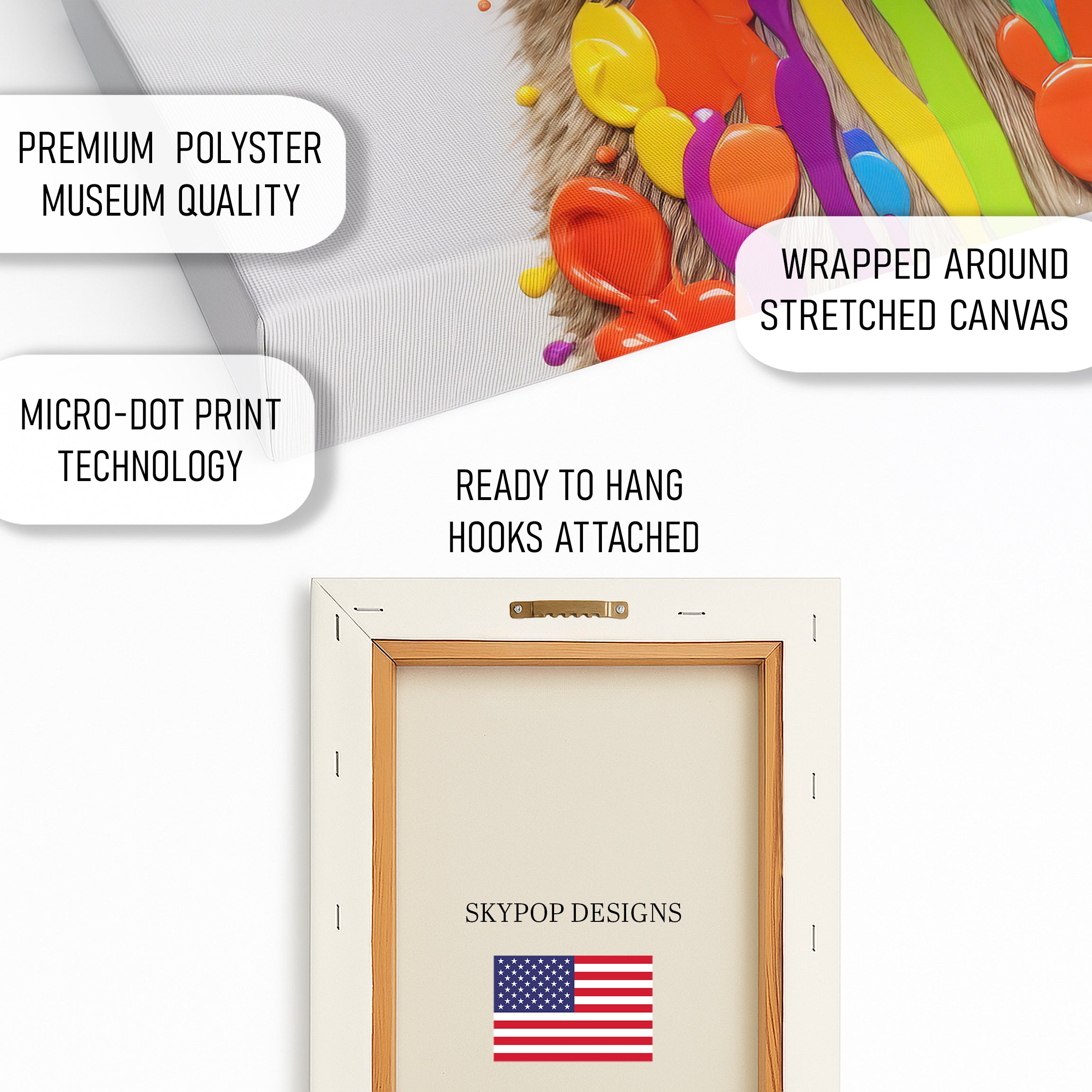 Surprise your guests with this unique meerkat canvas wall art that's sure to be a conversation starter. This vibrant poster captures the playful spirit of a meerkat adorned with colorful drips of paint and funky red glasses, bringing a burst of energy and personality to any space. The multicolor palette, featuring bright yellows, greens, and oranges, is perfect for creating a lively atmosphere in your living room or a creative touch in your office. This piece blends pop art sensibilities with a touch of street art flair, making it an ideal canvas for modern and bohemian decor styles. The striking visuals and bold colors are guaranteed to elevate your home decor, transforming a plain wall into a captivating focal point. This high-quality canvas wall art is not just a decoration; it's a statement of fun and individuality. Use this captivating artwork to enhance your bedroom's ambiance or add a splash of cheer to your hallway. It’s also a fantastic gift idea for birthdays or housewarmings for anyone who loves quirky animal art or vibrant home accents. Embrace the joy and creativity this meerkat poster brings, transforming your space into a more dynamic and inspiring environment. Discover the perfect addition to your art collection today with this eye-catching canvas!
