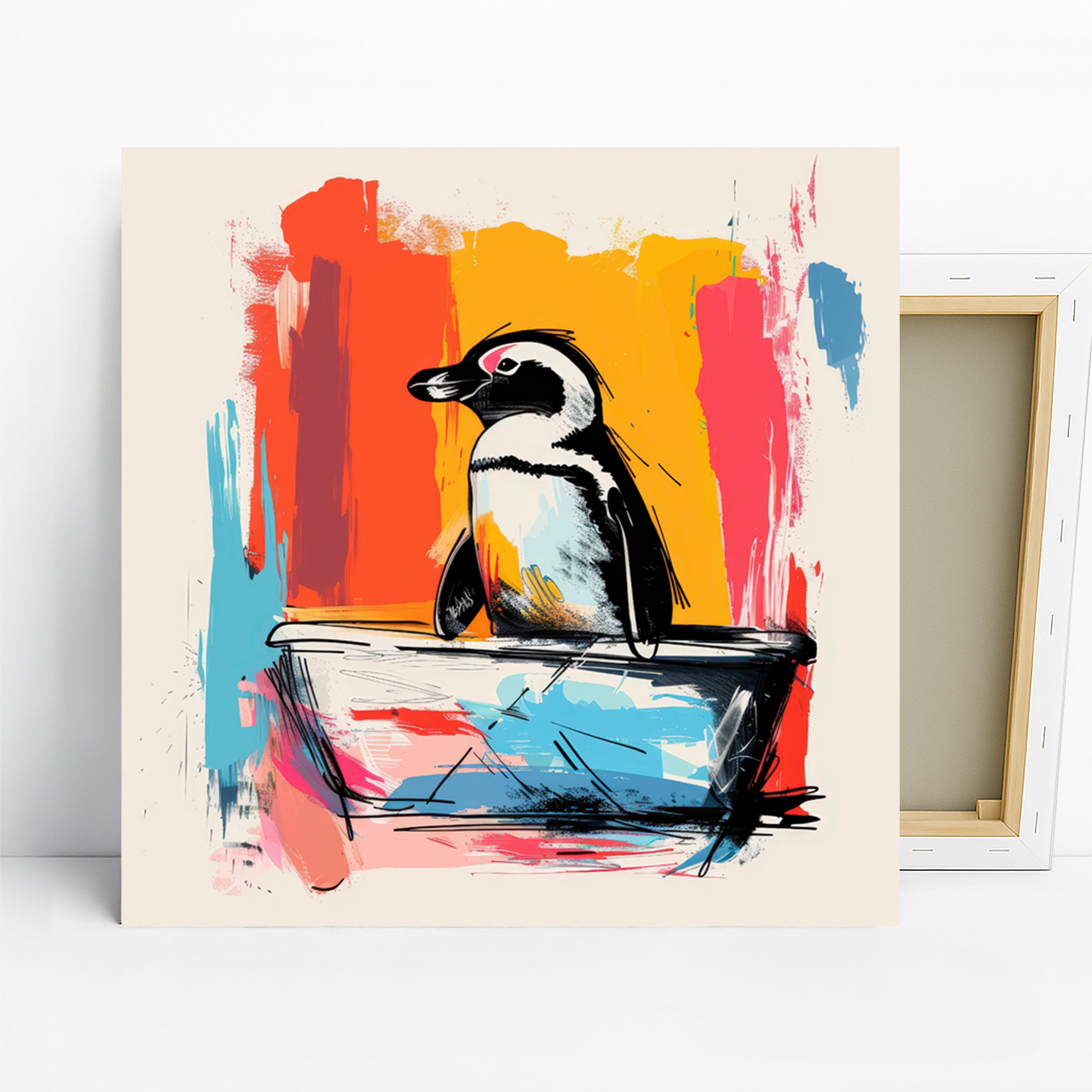 Elevate your space with this dynamic penguin canvas wall art, a striking piece that combines abstract expressionism with bold animal portraiture. The vibrant multicolor palette, featuring energetic strokes of red, yellow, blue, and pink, creates a captivating focal point in any room. This modern poster or canvas wall art is perfect for transforming your living room or office into a stylish haven, making a statement with its unique artistic interpretation of a penguin. The abstract background splashes and the simplified yet impactful depiction of the penguin evoke a sense of creative energy and modern flair, ideal for contemporary and minimalist decor styles. Whether you're a lover of animal art or seeking to add a pop of sophisticated color to your home, this high-quality print delivers. It’s a fantastic gift for birthdays or housewarmings, bringing life and personality to new spaces. The bold colors and graphic style of this canvas wall art create an uplifting mood and inspire conversation. Its versatility makes it a great addition to a bedroom, entryway, or even a modern bathroom, enhancing any interior with its striking visual appeal. Transform your wall decor with this unique and trendy piece of art that celebrates nature's wonders with an artistic twist. Add this stunning penguin artwork to your collection and enjoy its vibrant energy every day.