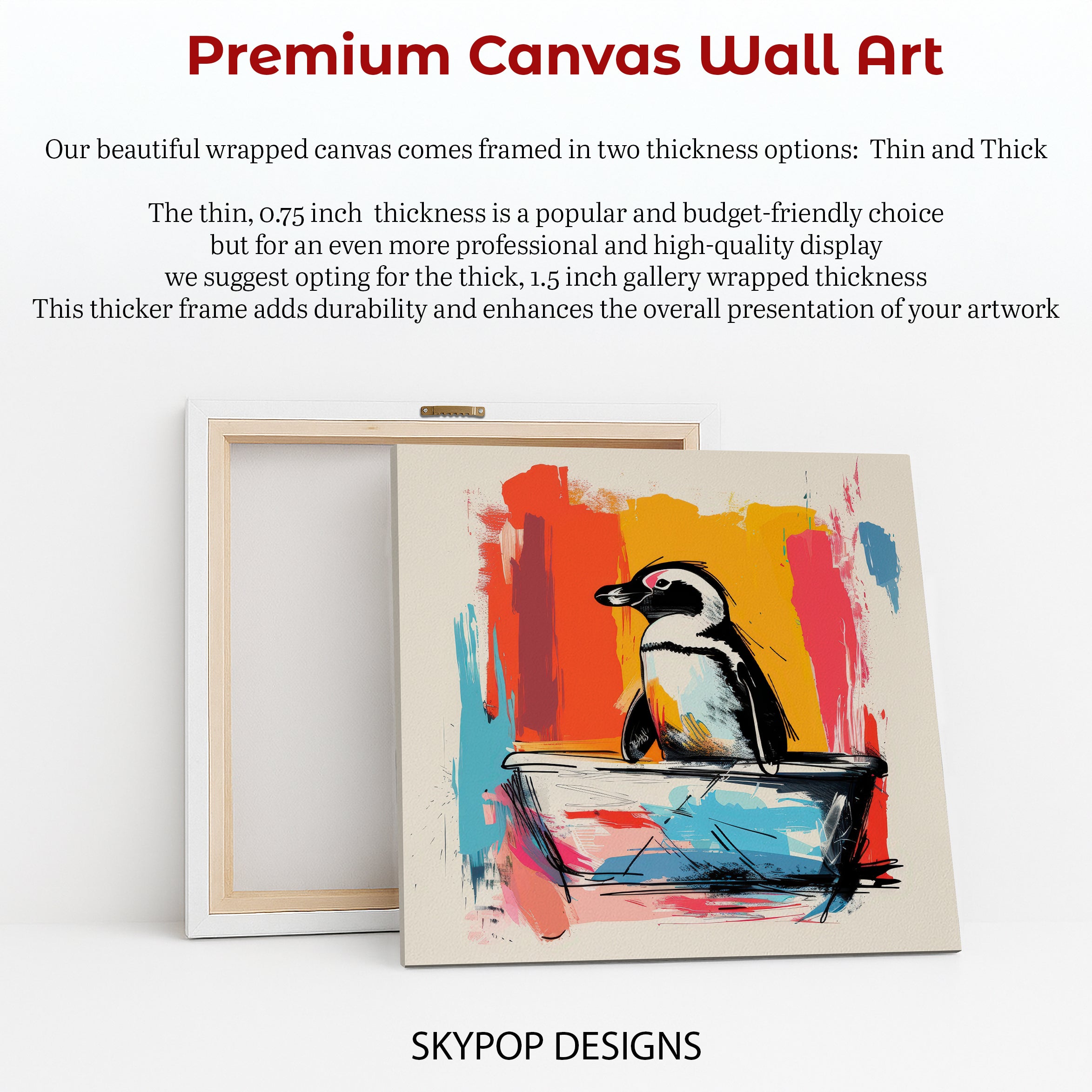 Keywords: Abstract Penguin Art, Canvas Wall Art, Modern Home Decor, Multicolor Art Print, Living Room Art, Office Wall Decor, Bold Animal Art, Contemporary Style, Minimalist Decor, Pop Art Inspired, Penguin Poster, Blue Red Yellow Art, Pink Accent Colors, Abstract Expressionism, Animal Portraiture, Creative Energy Art, Uplifting Wall Decor, Birthday Gift Ideas, Housewarming Present, Unique Artwork, Trendy Home Accents, Hallway Art, Bedroom Wall Art, Vibrant Colors Art, Stylish Interior Design, Statement Piece Art, Nature Inspired Decor, Graphic Style Art, High Quality Print, Artistic Penguin Splash