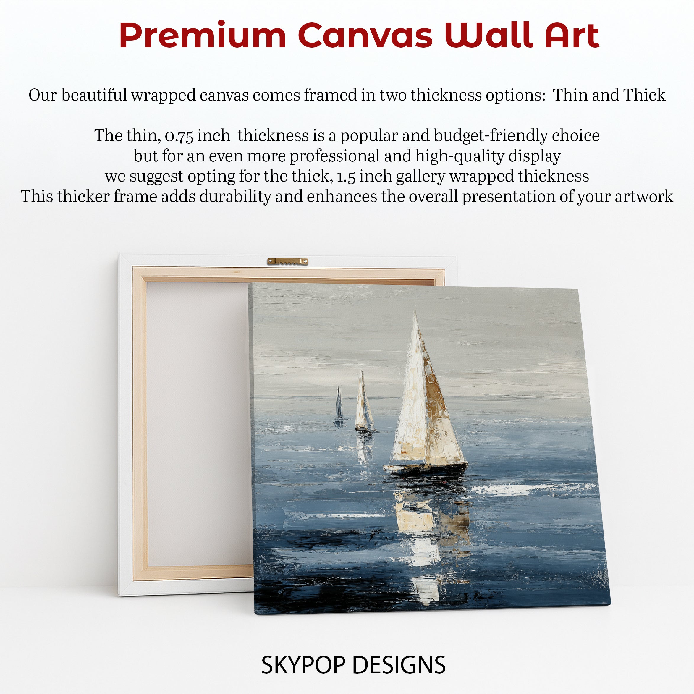 Keywords: Sailboats at Sea Canvas Art, Impressionism Art, Nature Art, Contemporary Art, Coastal Decor, Modern Decor, Scandinavian Decor, Living Room Wall Art, Bedroom Canvas Art, Hallway Art, Dining Room Decor, Blue Wall Art, White Artwork, Grey Home Decor, Ocean Canvas Print, Nautical Art, Seascape Wall Decor, Beach House Art, Coastal Living, Tranquil Blue Waters, Sailboat Painting, Textured Brushstrokes, Statement Wall Art, High-Quality Canvas, Home Decorating Ideas, Interior Design Inspiration, Housewarming Gift, Birthday Present, Holiday Gift, Wall Art for Sale