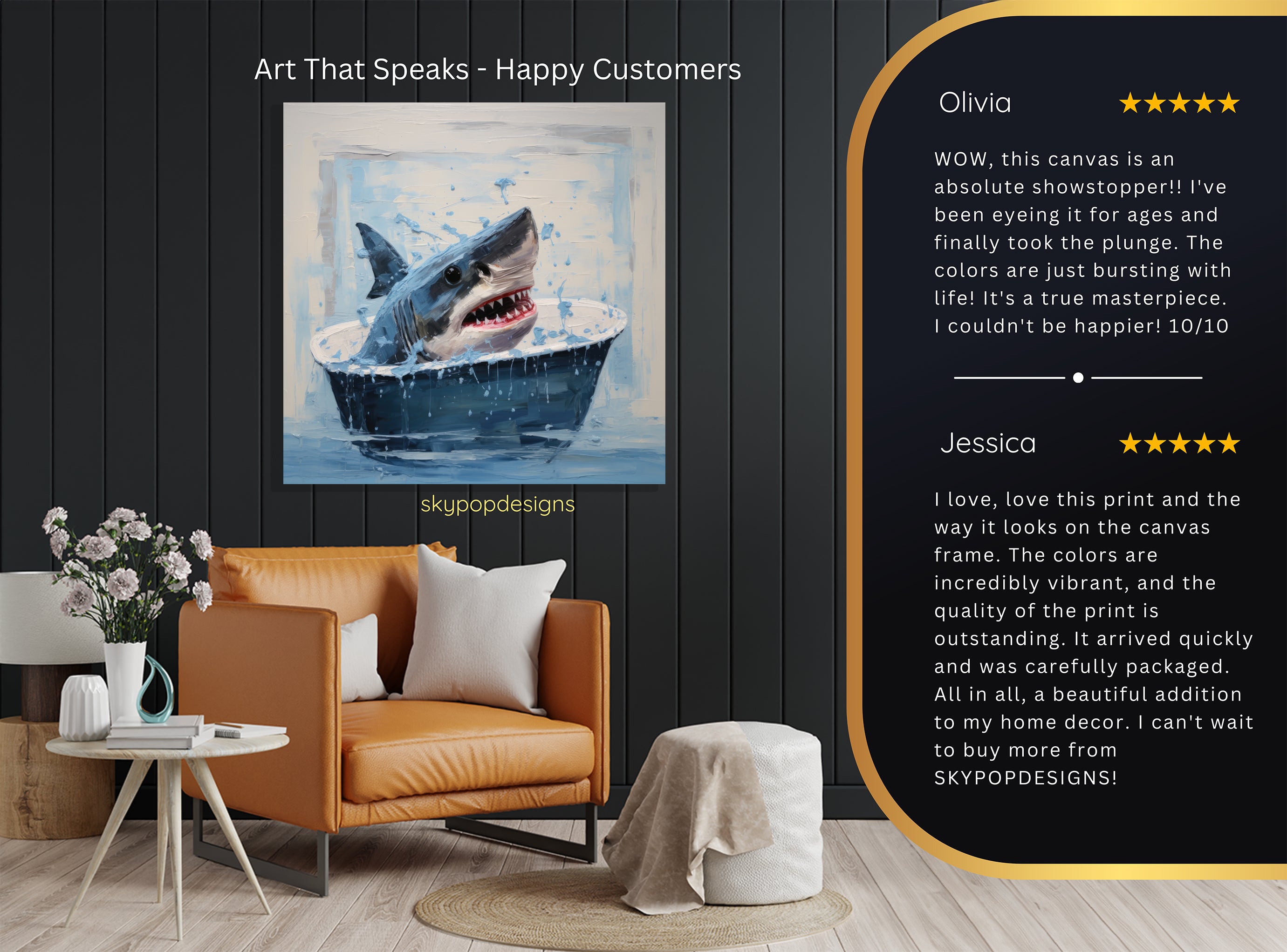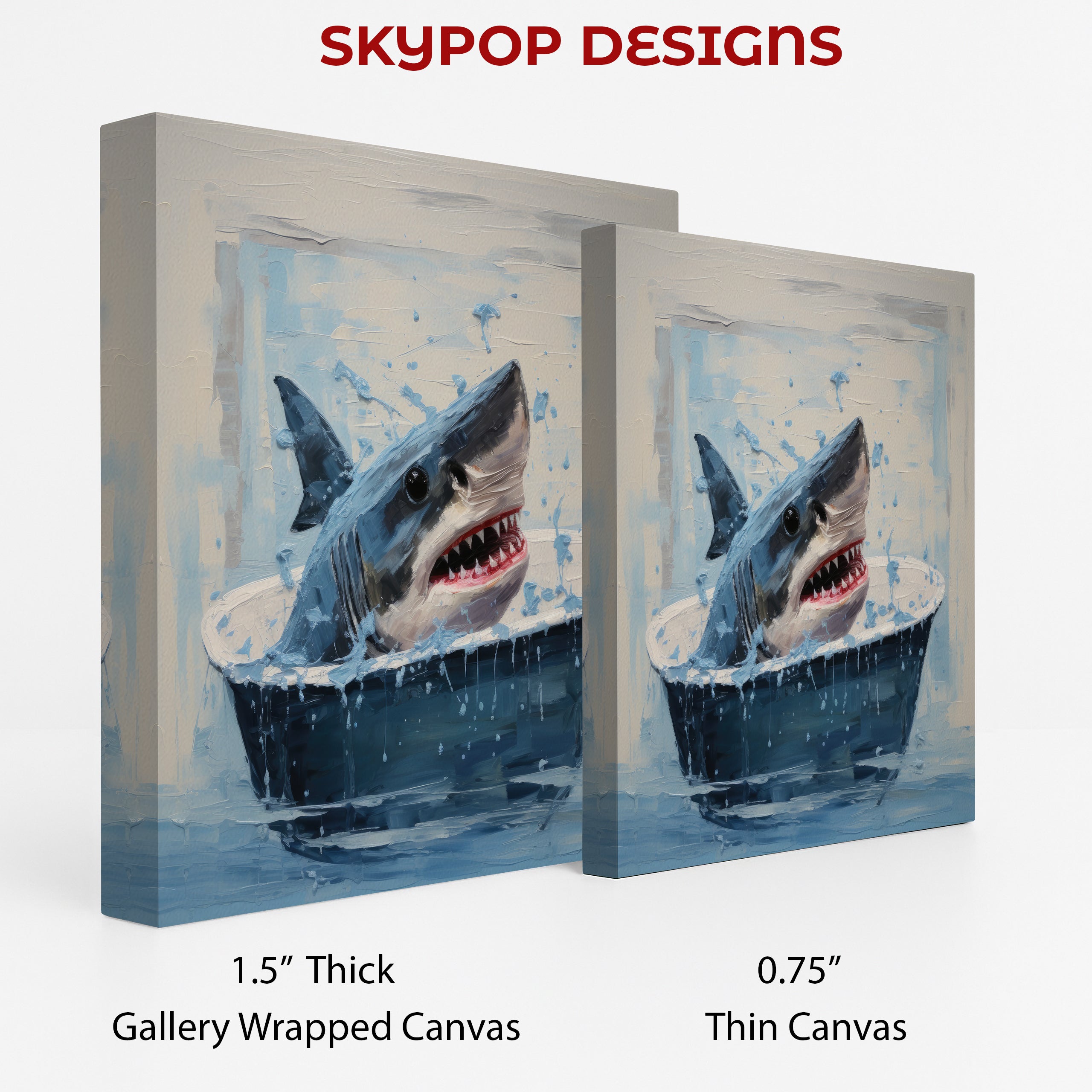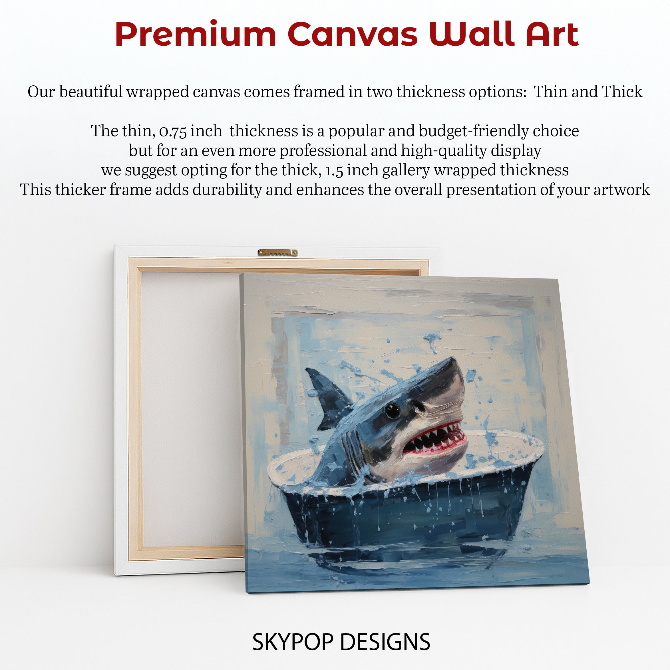 Keywords: Shark Art, Canvas Wall Art, Abstract Art, Contemporary Art, Whimsical Art, Modern Decor, Minimalist Decor, Scandinavian Decor, Living Room Art, Bathroom Art, Game Room Decor, Hallway Art, Blue Art, White Art, Black Art, Multicolor Art, Animal Art, Shark Bath Time, Humorous Art, Statement Piece, Home Decor, Wall Decor, Poster Art, Gift Ideas, Birthday Gift, Housewarming Gift, Unique Art, Textured Art, Bold Strokes, Playful Art
