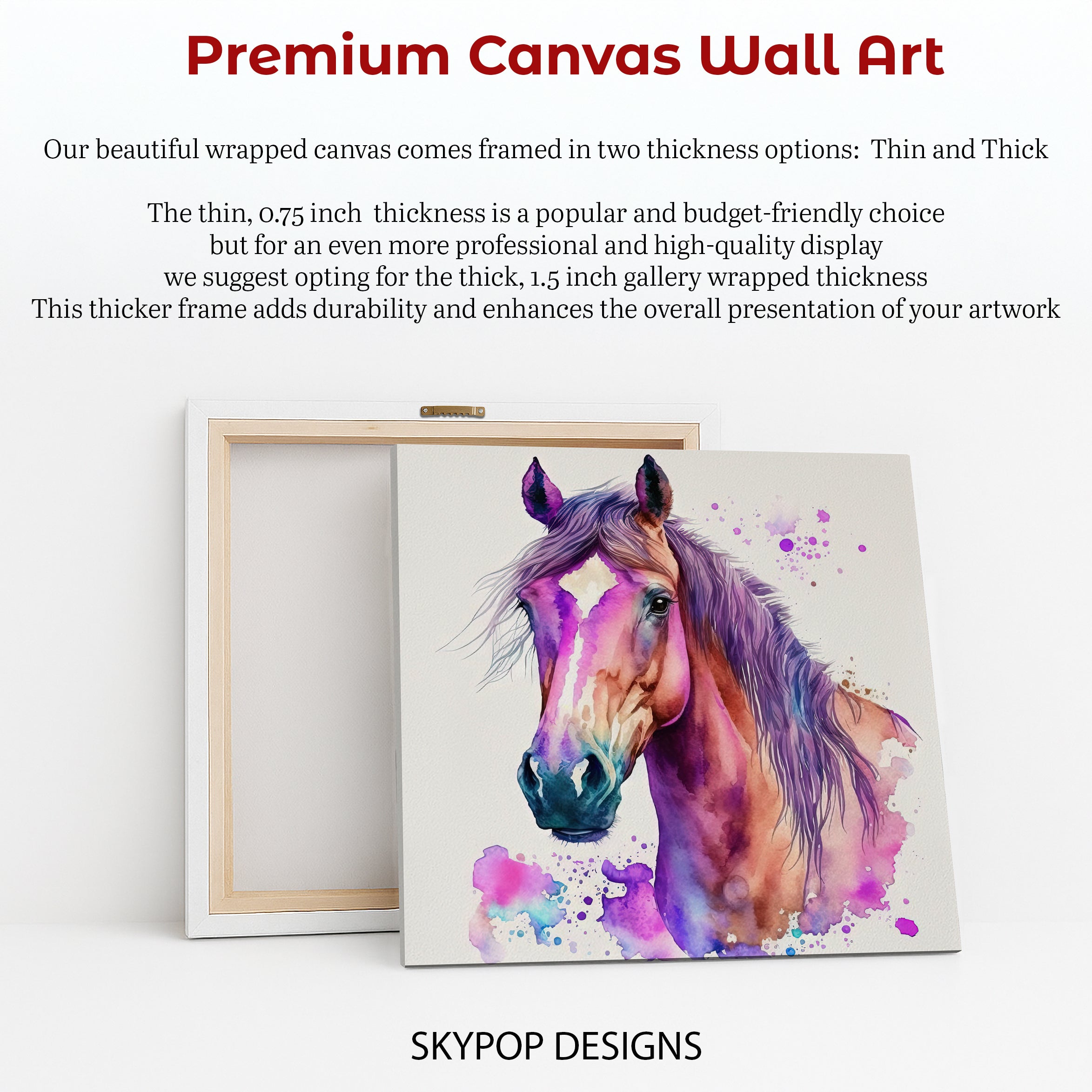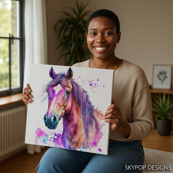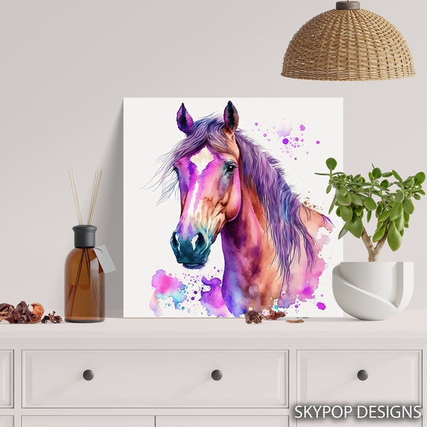 Keywords: Horse Canvas Art, Horse Wall Art, Animal Art, Contemporary Art, Abstract Art, Bohemian Decor, Modern Decor, Multicolor Art, Purple Art, Pink Art, Teal Art, Living Room Art, Bedroom Decor, Entryway Art, Office Wall Art, Horse Poster, Vibrant Horse Art, Watercolor Splash Art, Majestic Horse Art, Artistic Horse Print, Statement Wall Art, Colorful Wall Art, Home Decor Art, Artwork for Walls, Unique Wall Art, Horse Lover Gift, Housewarming Gift, Elegant Wall Decor, Modern Wall Decor, Bohemian Wall Art