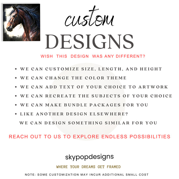 Looking for a custom design, or do you love a particular design but need it in a different size or orientation? Perhaps you've found a design elsewhere and wish for us to create something similar for you? Drop us a message! We're dedicated to meeting your needs and will work closely with you to ensure your vision comes to life.