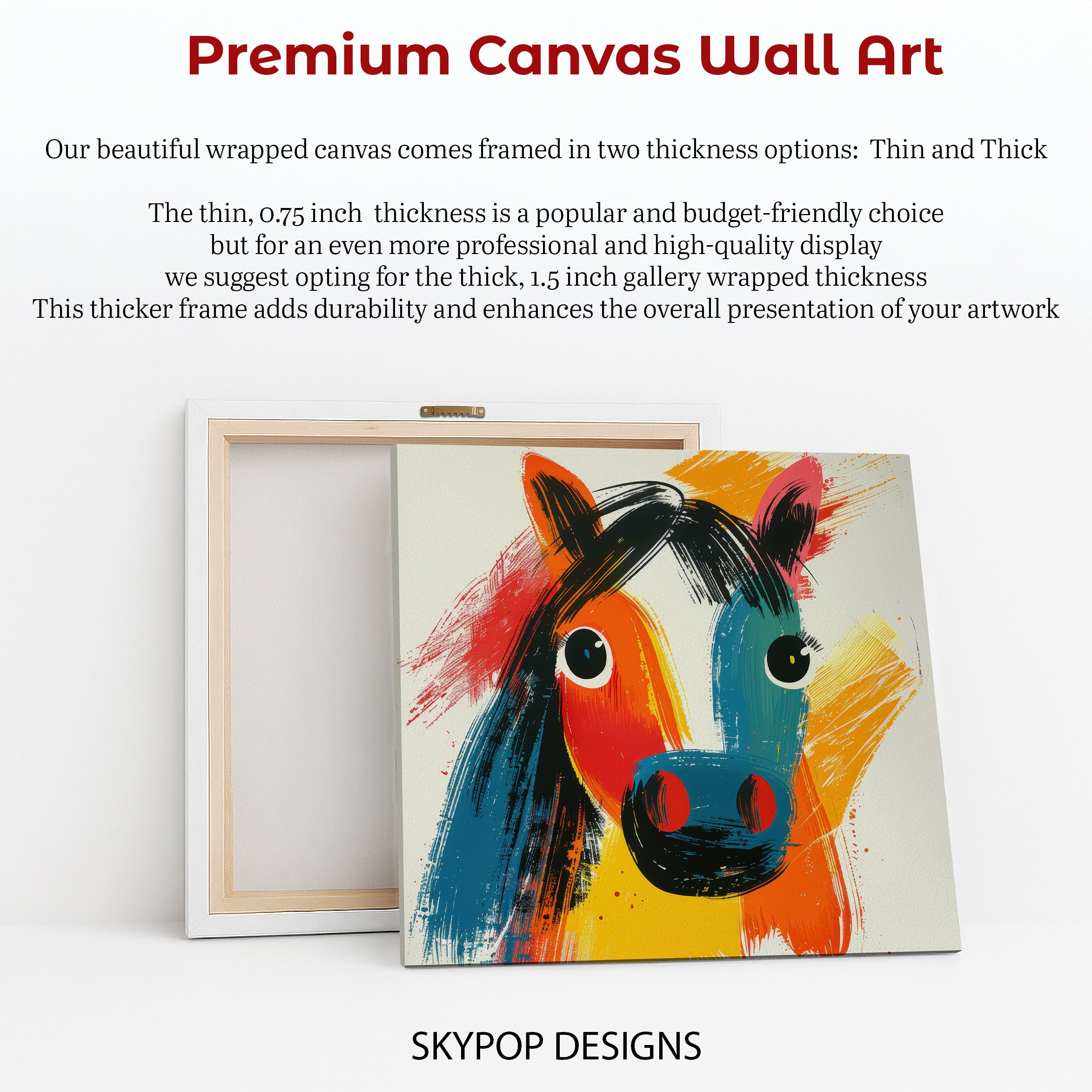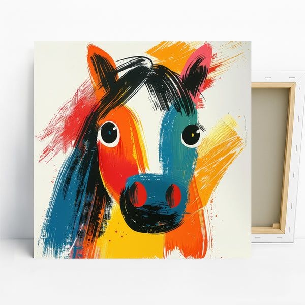 Keywords: abstract horse art, colorful wall art, multicolor canvas, modern home decor, contemporary art, bohemian decor, living room art, bedroom wall decor, office art, entryway art, horse picture, pop art horse, vibrant artwork, statement piece, animal wall art, abstract painting, bold colors, orange art, blue art, yellow art, horse lover gift, housewarming gift, unique wall decor, expressive brushwork, canvas print, wall poster, art enthusiast gift, interior design, home decoration, art for walls