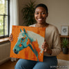 Horse Art, Canvas or Poster, Abstract Contemporary Decor, Living Room Bedroom Office Wall Art, Orange Teal Multicolor White, Glam