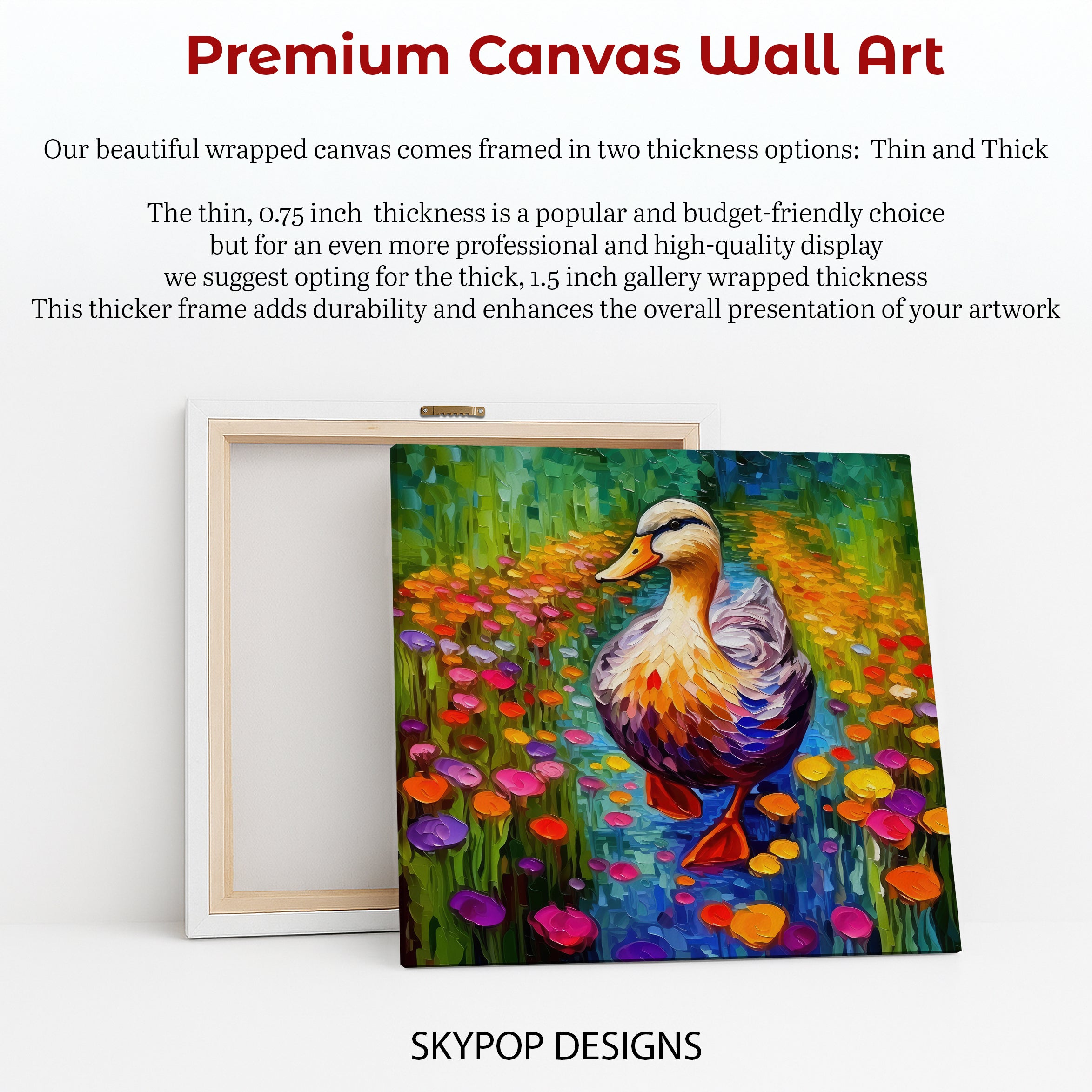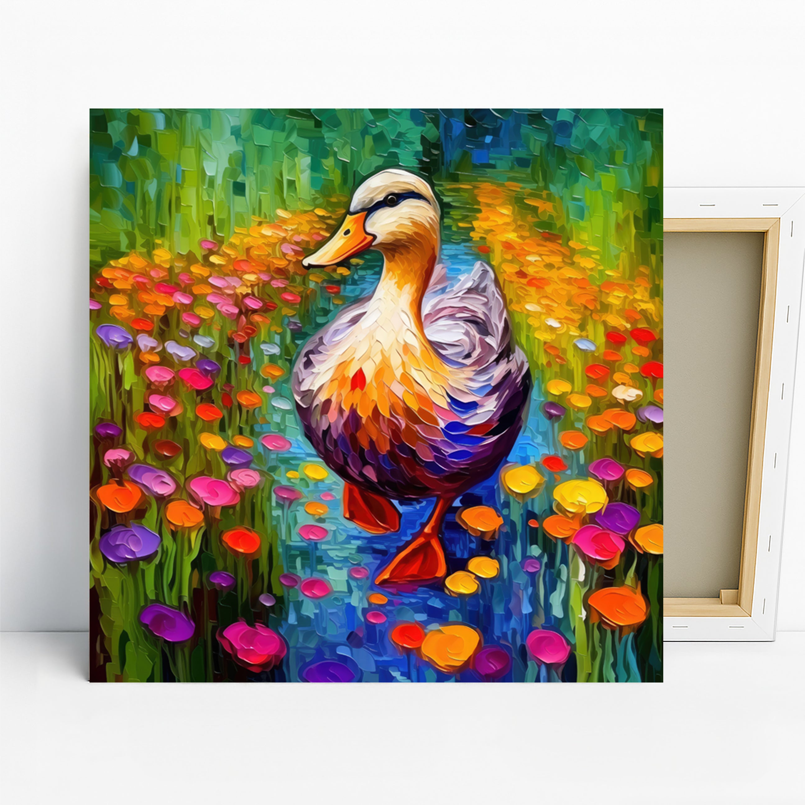 Keywords: Impressionism Art, Nature Art, Whimsical Art, Bohemian Decor, Modern Decor, Contemporary Art, Living Room Art, Bedroom Decor, Dining Room Art, Entryway Decor, Multicolor Art, Green Foliage, Orange Flowers, Blue Sky Art, Colorful Duck Art, Duck Wall Art, Animal Art, Flower Field Art, Vibrant Wall Art, Home Decor Art, Canvas Wall Art, Wall Art Poster, Wildlife Art, Outdoor Theme, Nature Lover Gift, Unique Wall Art, Textured Brushstrokes, Cheerful Home Decor, Interior Design Art, Bright Color Art