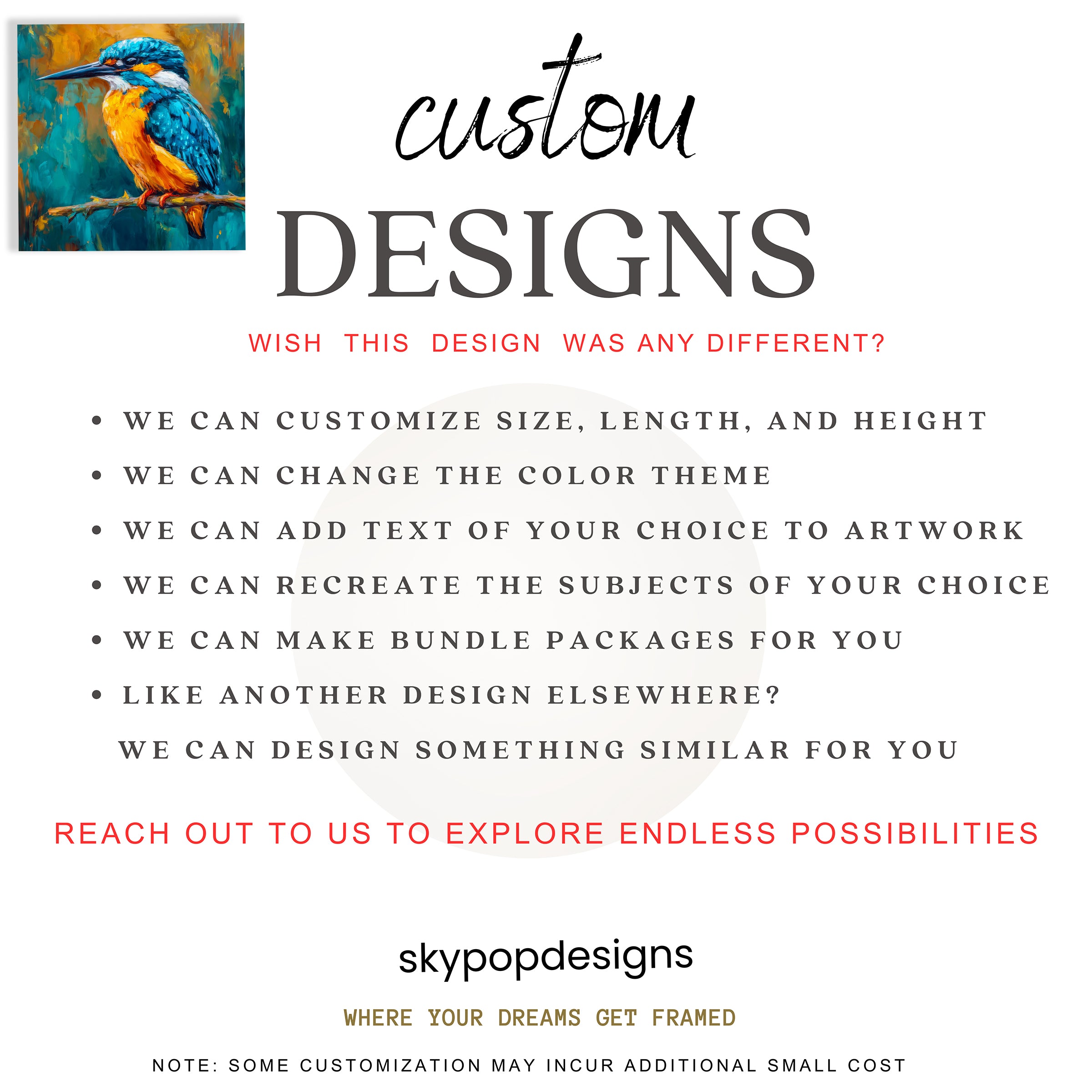 At SKYPOPDESIGNS, we specialize in high-quality canvas and poster prints designed to bring sophistication and style to your space. Please note that our designs are not created with 3D textures or as original oil, acrylic, or watercolor paintings; they are instead HD reproductions of original artwork. This approach allows us to offer these visually stunning pieces at competitive prices, ensuring you receive top-tier, maintenance-free art that's easy to enjoy.