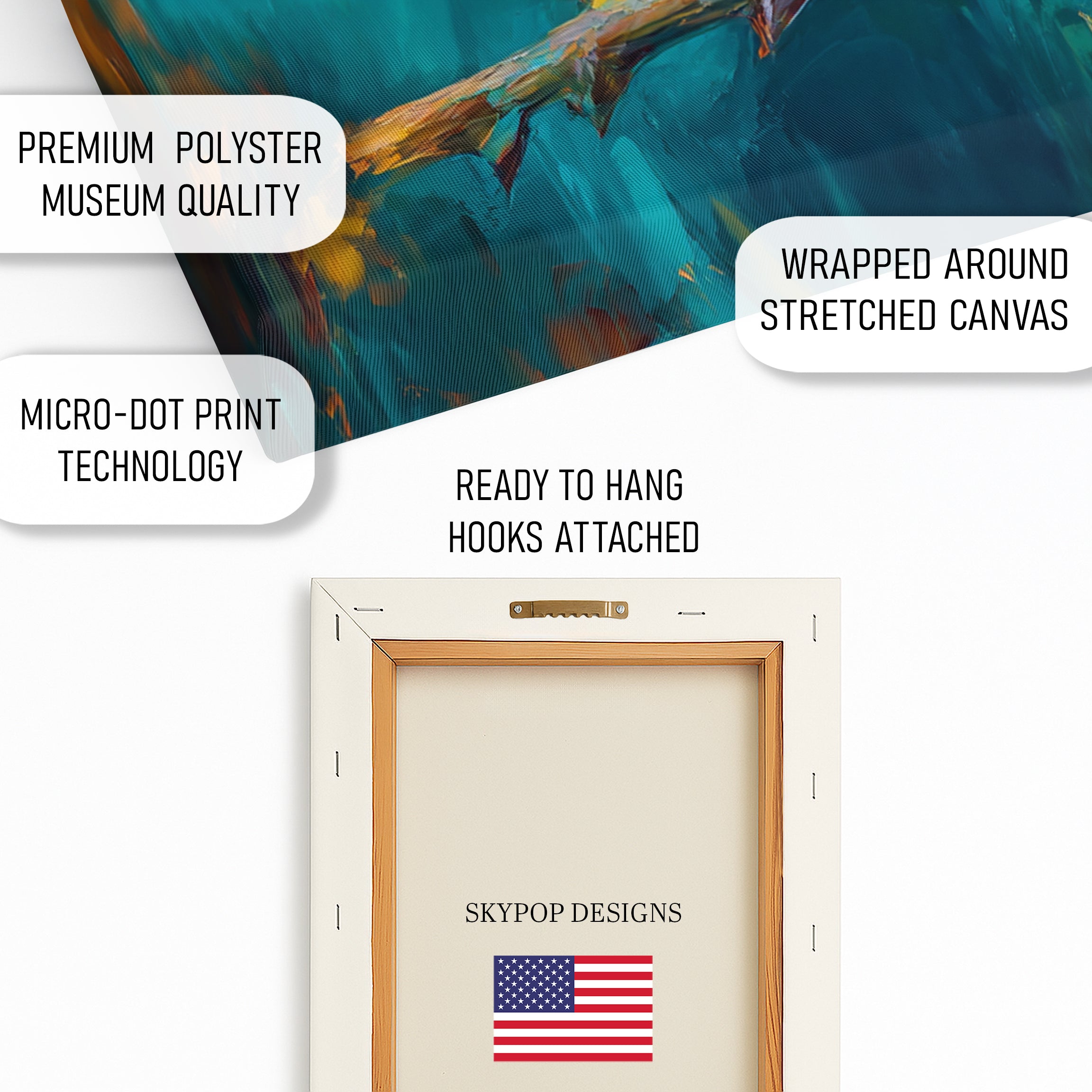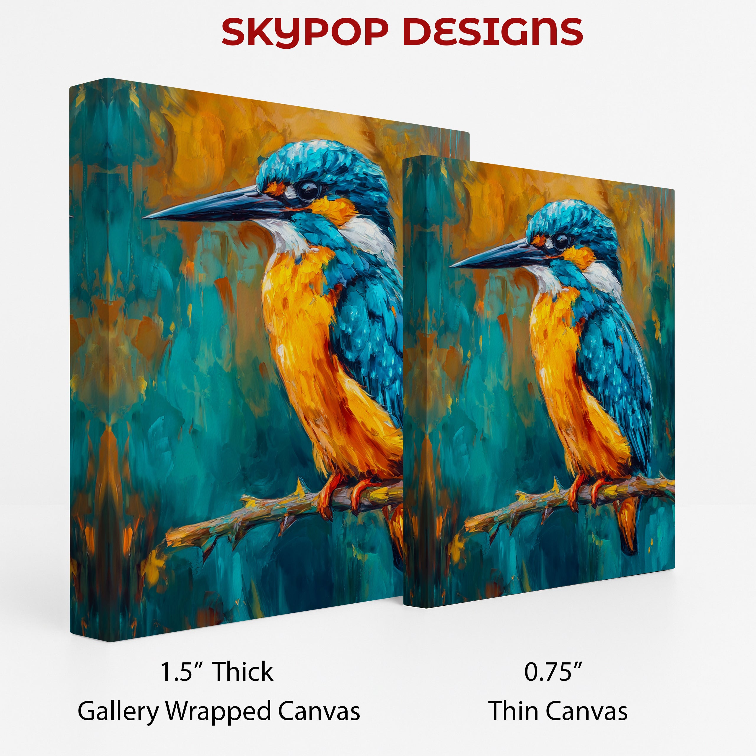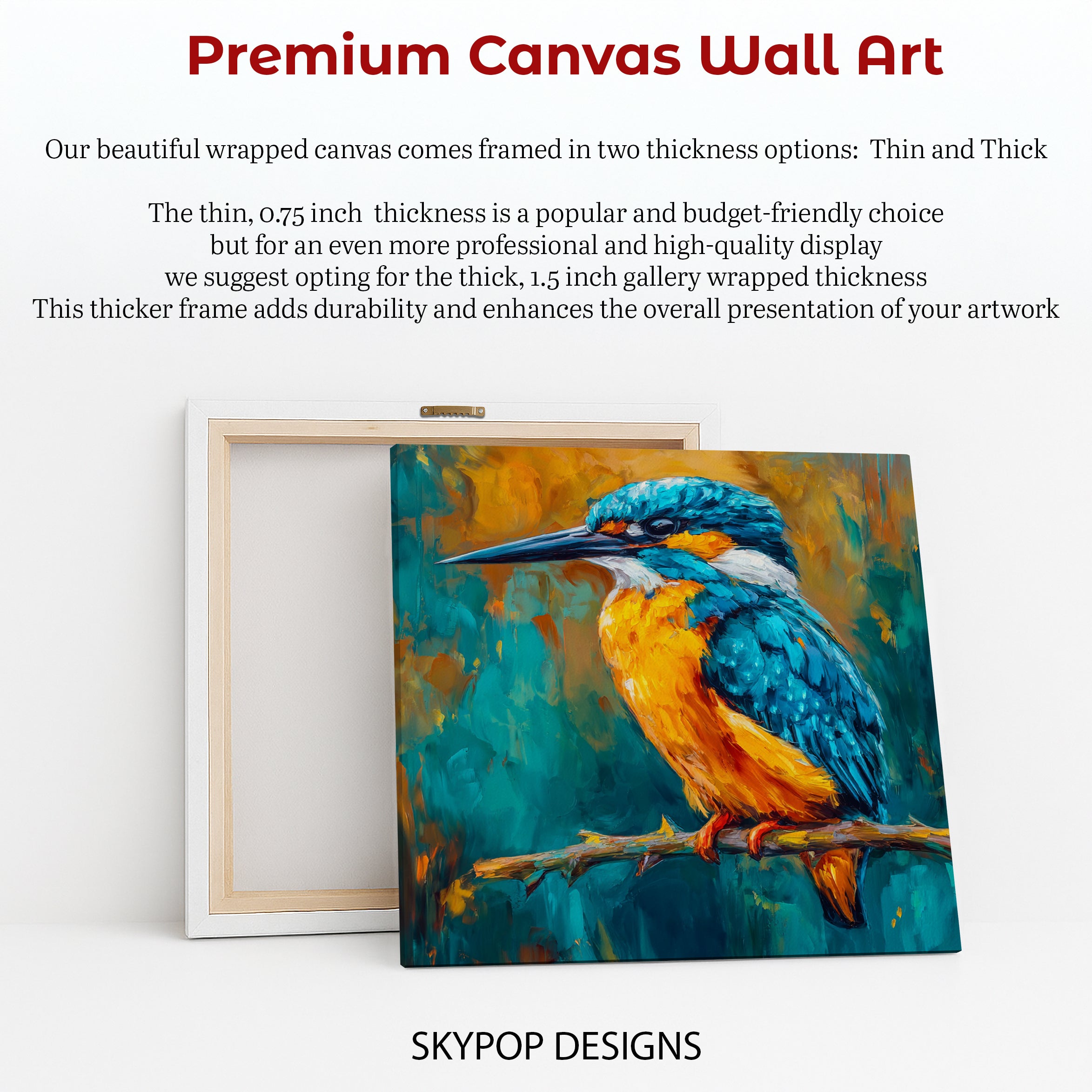 Kingfisher Art, Canvas or Poster, Impressionism Contemporary Bohemian Decor, Living Room Bedroom Wall Art, Teal Orange Blue Yellow