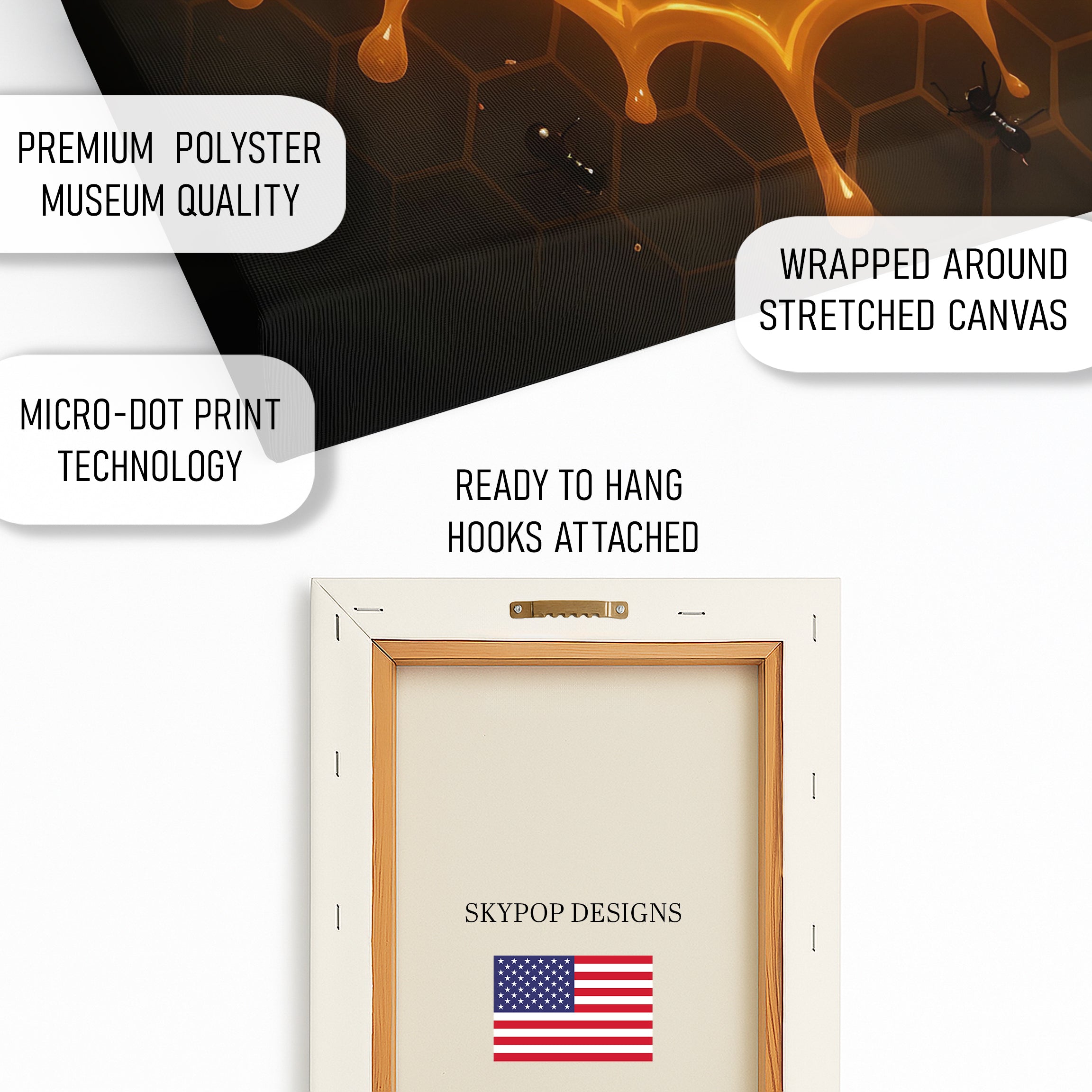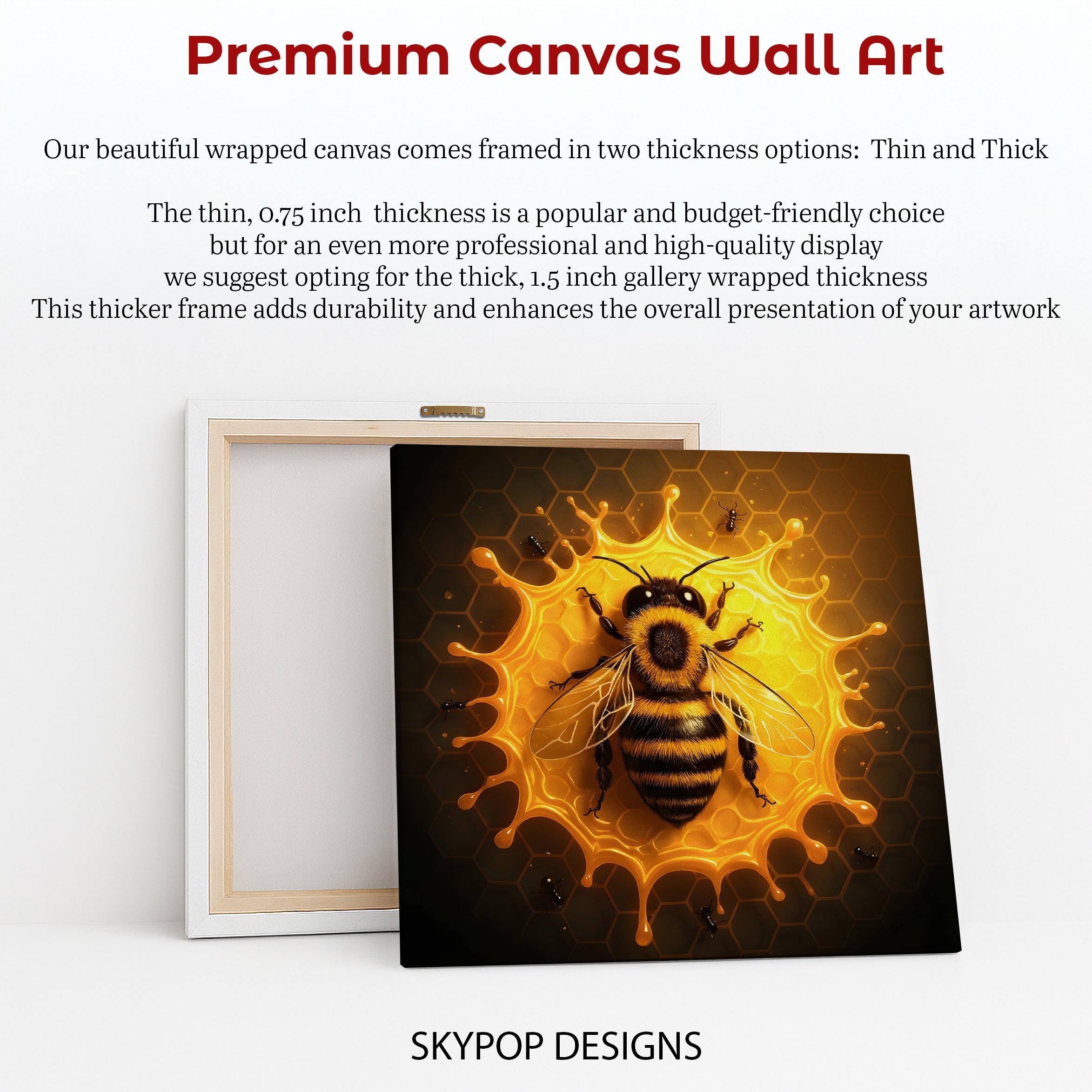 Keywords: Bee Wall Art, Honeycomb Art, Nature Canvas, Animal Art Print, Modern Wall Decor, Minimalist Art, Bohemian Decor, Living Room Art, Kitchen Art, Office Wall Decor, Dining Room Art, Gold Art, Yellow Art, Black Art, Brown Art, Bee Decor, Nature Art, Contemporary Art, Framed Canvas, Canvas Poster, Wall Art Gift, Housewarming Gift, Birthday Gift, Nature Lover Gift, Wildlife Art, Insect Art, Sweetness Art, Organic Elegance, Vibrant Energy, Glistening Honey