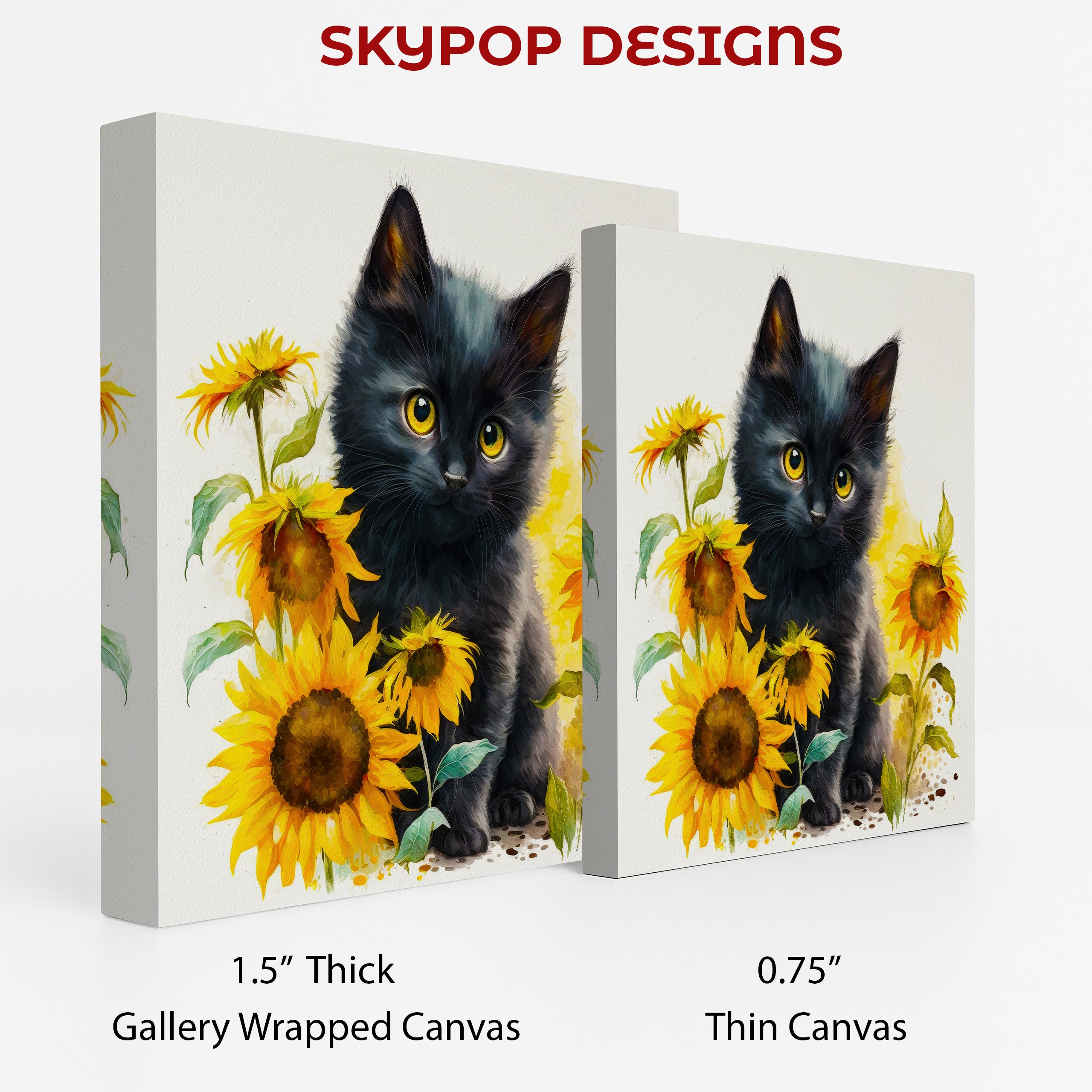 Keywords: Cat Wall Art, Black Cat Art, Sunflower Art, Yellow Sunflower, Whimsical Art, Animal Art, Nature Art, Bohemian Decor, Farmhouse Decor, Contemporary Decor, Living Room Art, Bedroom Art, Kids Room Art, Kitchen Art, Multicolor Art, Yellow Art, Green Art, Black Art, Cat Lover Gift, Sunflower Gift, Housewarming Gift, Birthday Gift, Watercolor Art, Canvas Print, Wall Decor, Home Decor, Pet Art, Joyful Art, Cozy Atmosphere, Bright Home Decor
