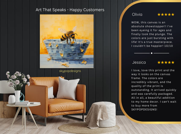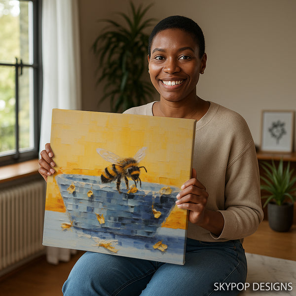 Keywords: Bumblebee Art, Bumblebee Canvas, Wall Art, Canvas Art, Home Decor, Living Room Art, Bedroom Art, Kitchen Art, Office Art, Nature Art, Animal Art, Contemporary Art, Modern Art, Minimalist Decor, Bohemian Decor, Yellow Art, Blue Art, Gold Art, Brown Art, Bee Poster, Abstract Art, Textured Art, Vibrant Art, Gift Idea, Housewarming Gift, Birthday Gift, Wall Decor, Statement Piece, Nature Inspired, Wildlife Art