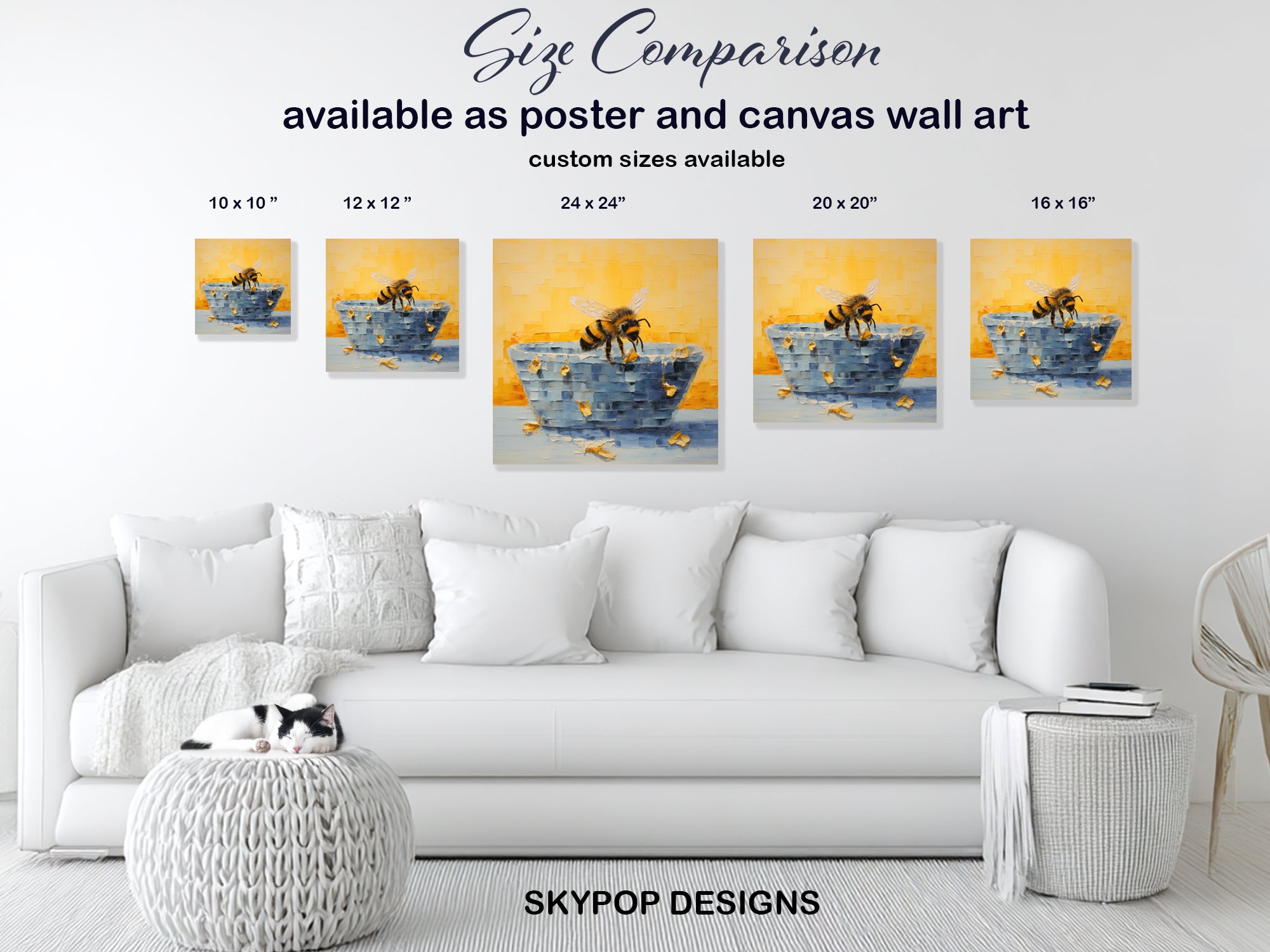 Bumblebee Gathering Art, Canvas or Poster, Contemporary Modern Bohemian Decor, Living Room Bedroom Kitchen Office Art,Yellow Blue Gold Brown