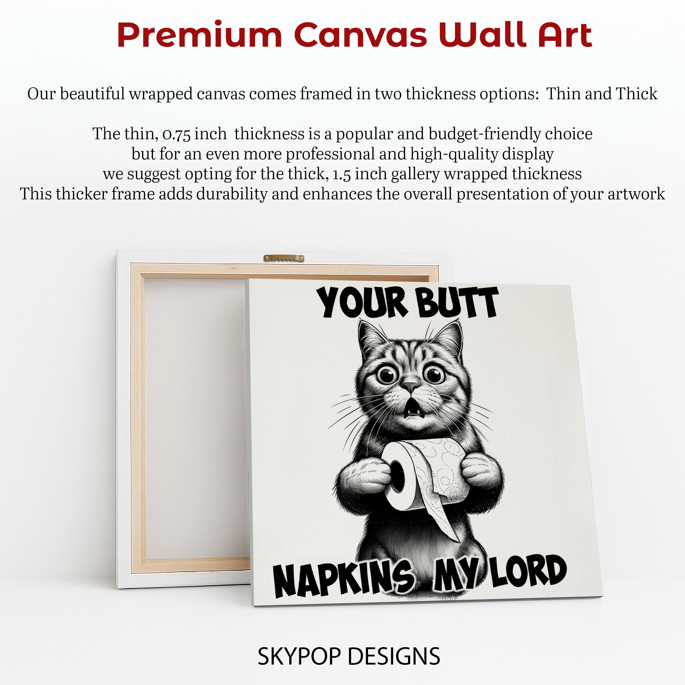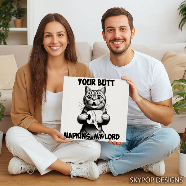 Add a touch of humor and personality to your home with this hilarious cat canvas wall art. Featuring a dramatic black and white illustration of a cat holding toilet paper, this piece is sure to be a conversation starter. The bold text and expressive feline make it the perfect addition to a bathroom, kitchen, or living room, adding a fun, contemporary vibe. This eye-catching canvas art is ideal for cat lovers and anyone who appreciates quirky decor. It’s a fantastic gift for birthdays, housewarmings, or holidays, bringing smiles and laughs to any recipient. This poster offers a striking visual impact, transforming any space into a more vibrant and engaging environment. The high-quality printing ensures the intricate details of the cat’s fur and surprised expression are captured perfectly. Elevate your wall decor with this unique piece that blends pop art sensibilities with animal art charm, creating a truly memorable focal point. This versatile artwork is available in various sizes, ensuring a perfect fit for your desired space, whether you want a subtle accent or a grand statement. Make your home uniquely yours and embrace the fun with this captivating cat canvas wall art. Transform your ordinary walls into extraordinary displays of personality and joy.