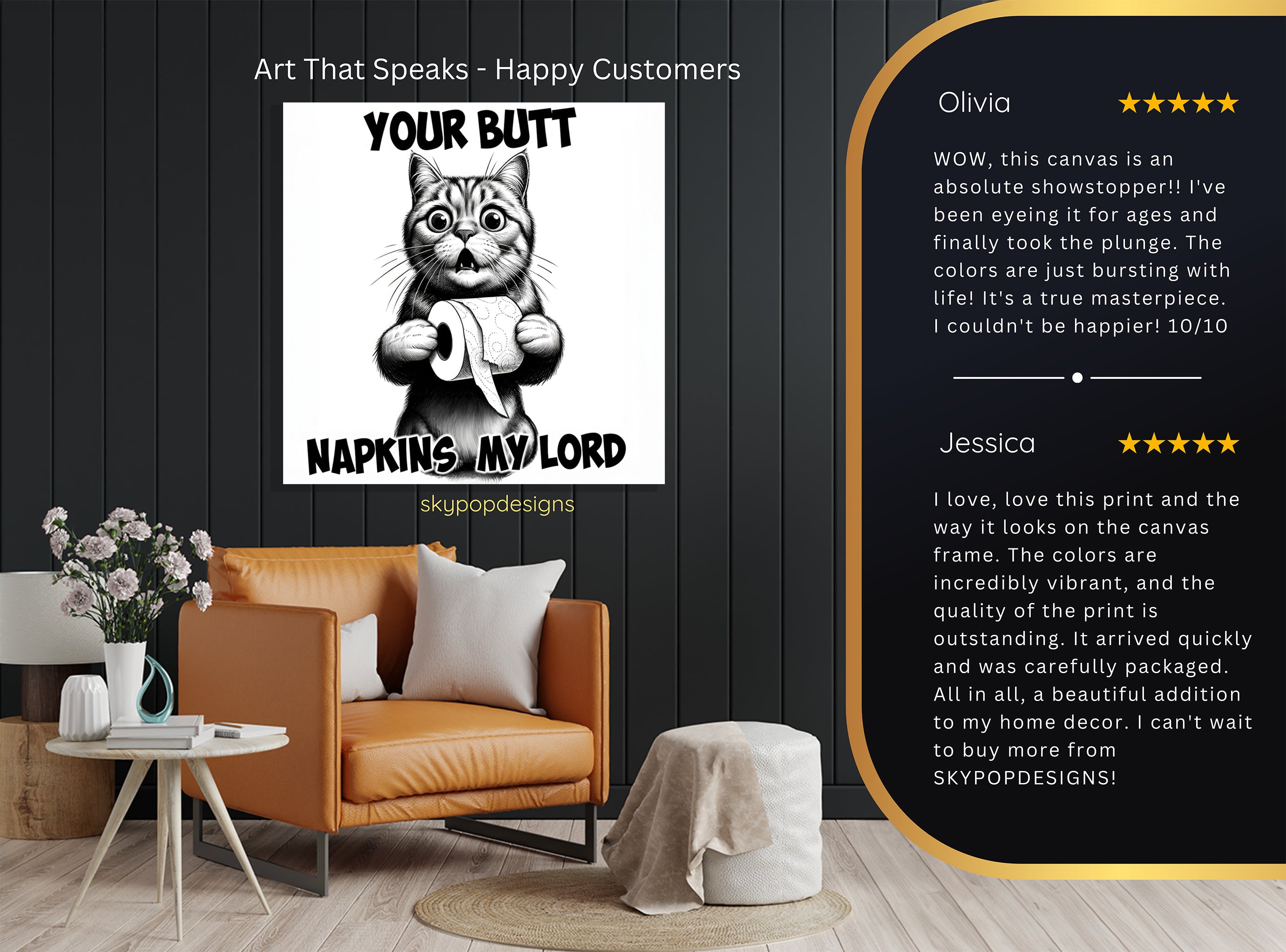 At SKYPOPDESIGNS, we specialize in high-quality canvas and poster prints designed to bring sophistication and style to your space. Please note that our designs are not created with 3D textures or as original oil, acrylic, or watercolor paintings; they are instead HD reproductions of original artwork. This approach allows us to offer these visually stunning pieces at competitive prices, ensuring you receive top-tier, maintenance-free art that's easy to enjoy.