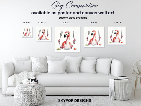 Flamingo Dinner Party Art, Canvas or Poster, Whimsical Pop Art, Bohemian Contemporary Decor, Living Room Kitchen Wall Art, Pink White Green