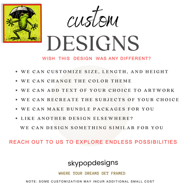Keywords: Pop Art Frog Art, Graffiti Wall Art, Whimsical Frog Poster, Contemporary Living Room Decor, Modern Bedroom Art, Bohemian Kitchen Art, Green Black Yellow Red Art, Froggy Rainy Day Canvas, Umbrella Frog Artwork, Vibrant Home Decor, Statement Wall Art, Humorous Animal Art, Quirky Wall Art, Children's Room Decor, Housewarming Gift Idea, Birthday Present Art, Holiday Gift Wall Art, Unique Animal Art, Colorful Canvas Print, Splash of Personality Art, Graphic Lines Artwork, Cheerful Wall Decor, Eye-Catching Art Piece, Modern Kitchen Art, Playful Home Accent, Durable Wall Art, Stunning Art Collection, Entryway Decor Art, Dining Room Art, Fun Resilience Art