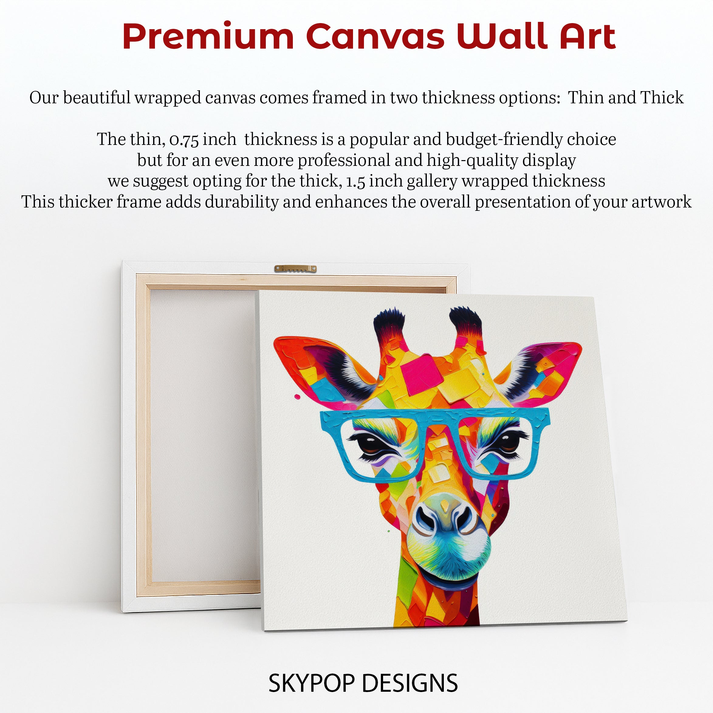 Keywords: Pop Art Giraffe, Contemporary Art, Abstract Wall Art, Modern Decor, Bohemian Style, Multicolor Canvas, Yellow Blue Pink, Giraffe Print, Hipster Giraffe, Living Room Art, Bedroom Wall Decor, Office Art, Kitchen Decor, Animal Lovers Gift, Art Enthusiast Gift, Vibrant Art, Bold Design, Stylish Giraffe, Blue Glasses Art, Playful Charm, Modern Sophistication, Home Decor, Interior Design, Wall Poster, Wall Art Print, Unique Artwork, Trendy Wall Art, Colorful Art, Focal Point, Eye-Catching Decor