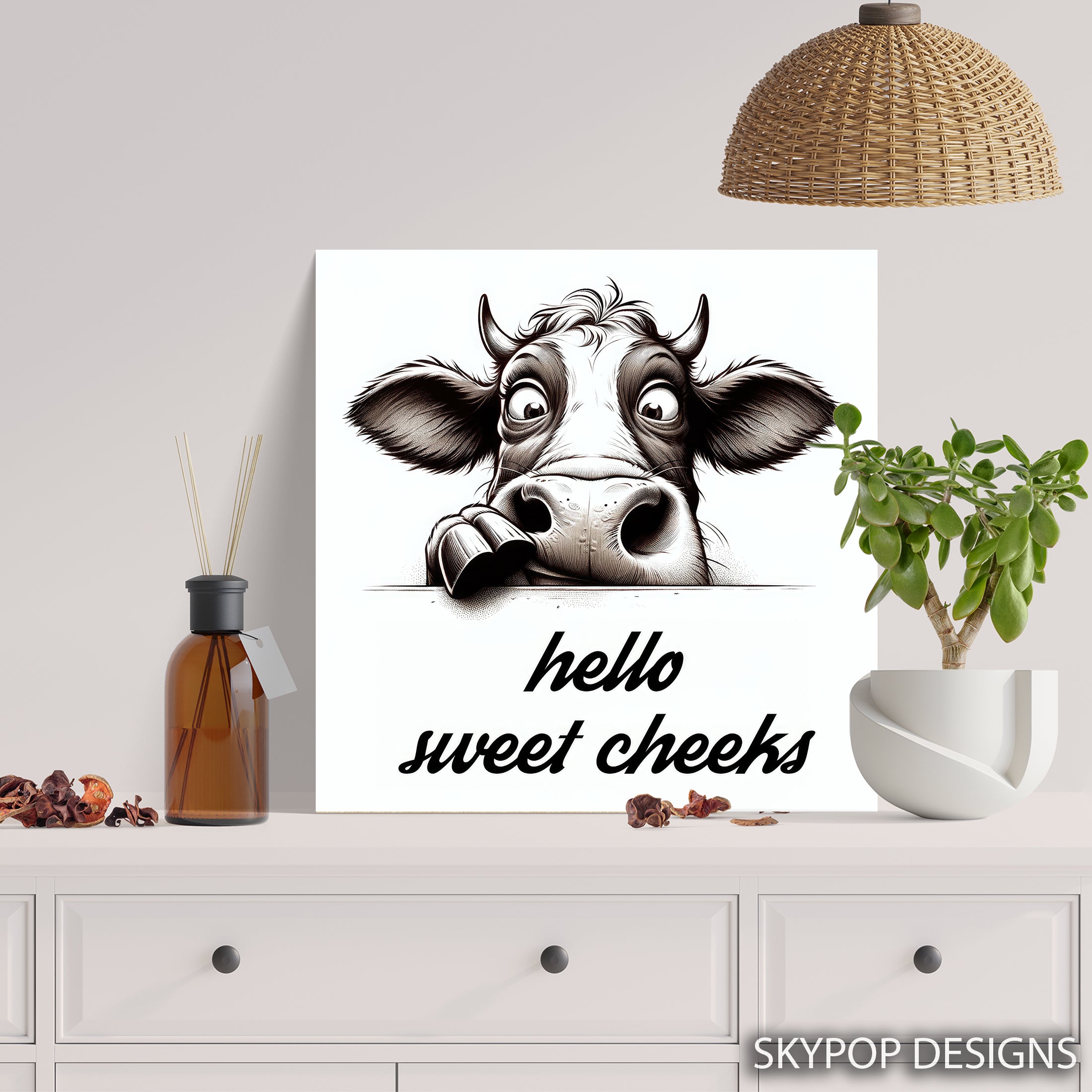 Keywords: Black and White Art, Animal Art, Whimsical Art, Modern Decor, Farmhouse Decor, Bohemian Decor, Kitchen Wall Art, Living Room Decor, Bedroom Art, Children's Room Decor, Black and White Art, White Art, Black Art, Highland Cow Art, Hello Sweet Cheeks Cow, Cow Poster, Canvas Wall Art, Humorous Wall Art, Animal Print, Farmhouse Charm, Quirky Art, Home Decor, Wall Decor, Housewarming Gift, Birthday Gift, Animal Lover Gift, Cute Cow Art, Country Decor, Rustic Decor, Contemporary Art