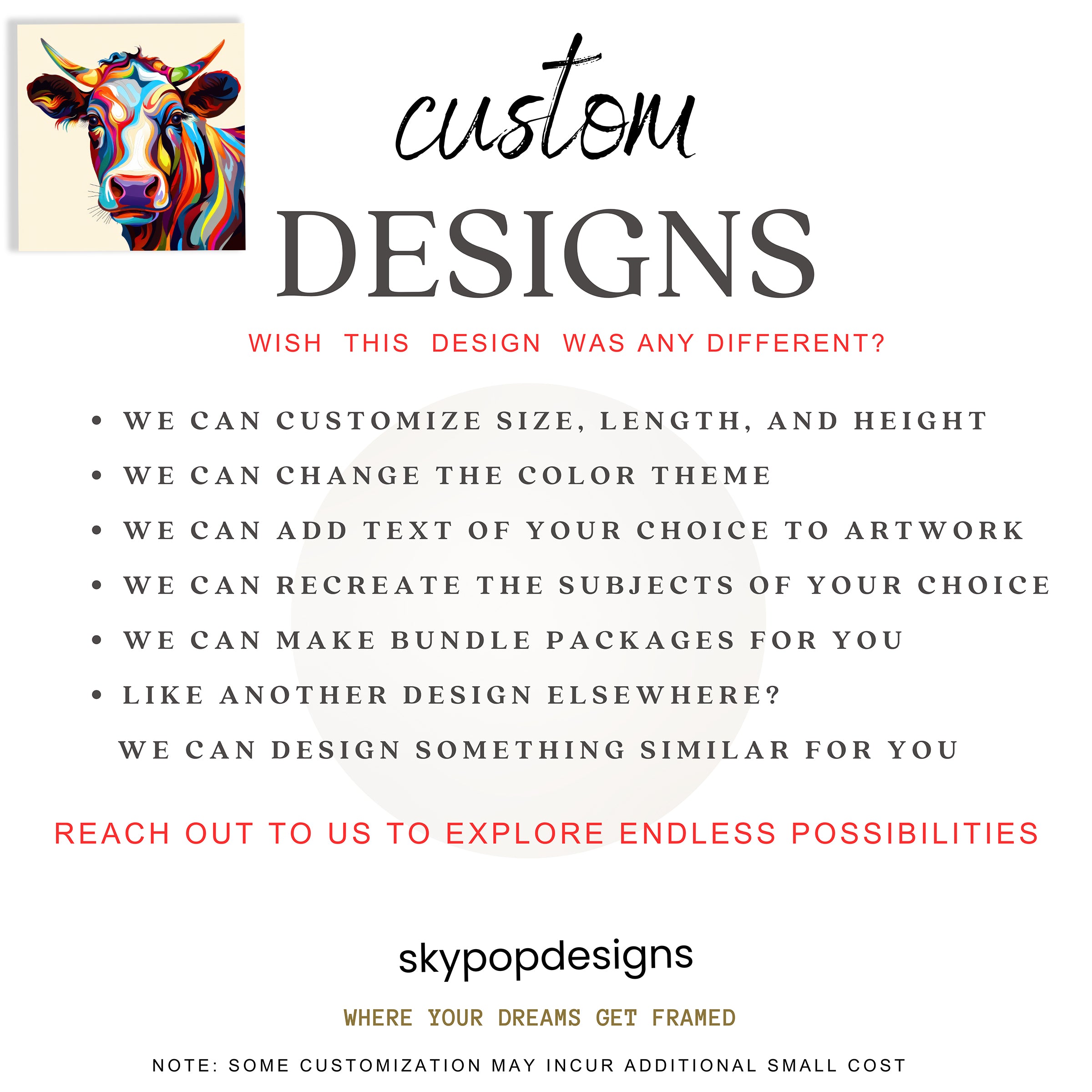 Looking for a custom design, or do you love a particular design but need it in a different size or orientation? Perhaps you've found a design elsewhere and wish for us to create something similar for you? Drop us a message! We're dedicated to meeting your needs and will work closely with you to ensure your vision comes to life.