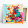 Highland Cow Art, Poster or Canvas, Abstract Bohemian Decor, Living Room Bedroom Office Wall Art, Pink Yellow Teal Multicolor, Animal Art