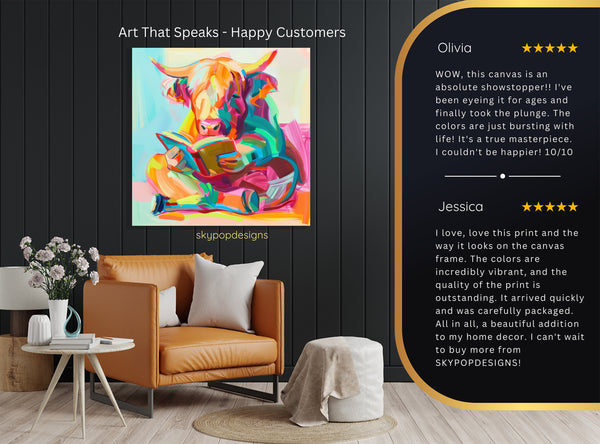 Keywords: Highland Cow Art, Canvas Wall Art, Abstract Art, Animal Art, Pink Yellow Art, Multicolor Poster, Whimsical Art, Bohemian Decor, Modern Decor, Contemporary Art, Living Room Art, Bedroom Decor, Office Wall Art, Kitchen Wall Art, Reading Cow Art, Unique Artwork, Vibrant Colors, Home Decor, Interior Design, Birthday Gift, Housewarming Gift, Animal Lover Gift, Art Print, Canvas Print, Wall Decor, Abstract Expressionism, Bold Brushstrokes, Inspirational Art, Cozy Home, Charming Wall Art